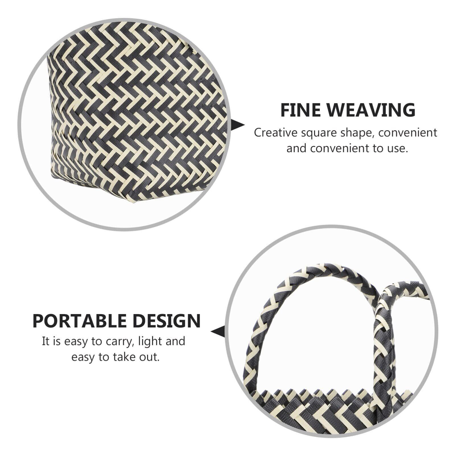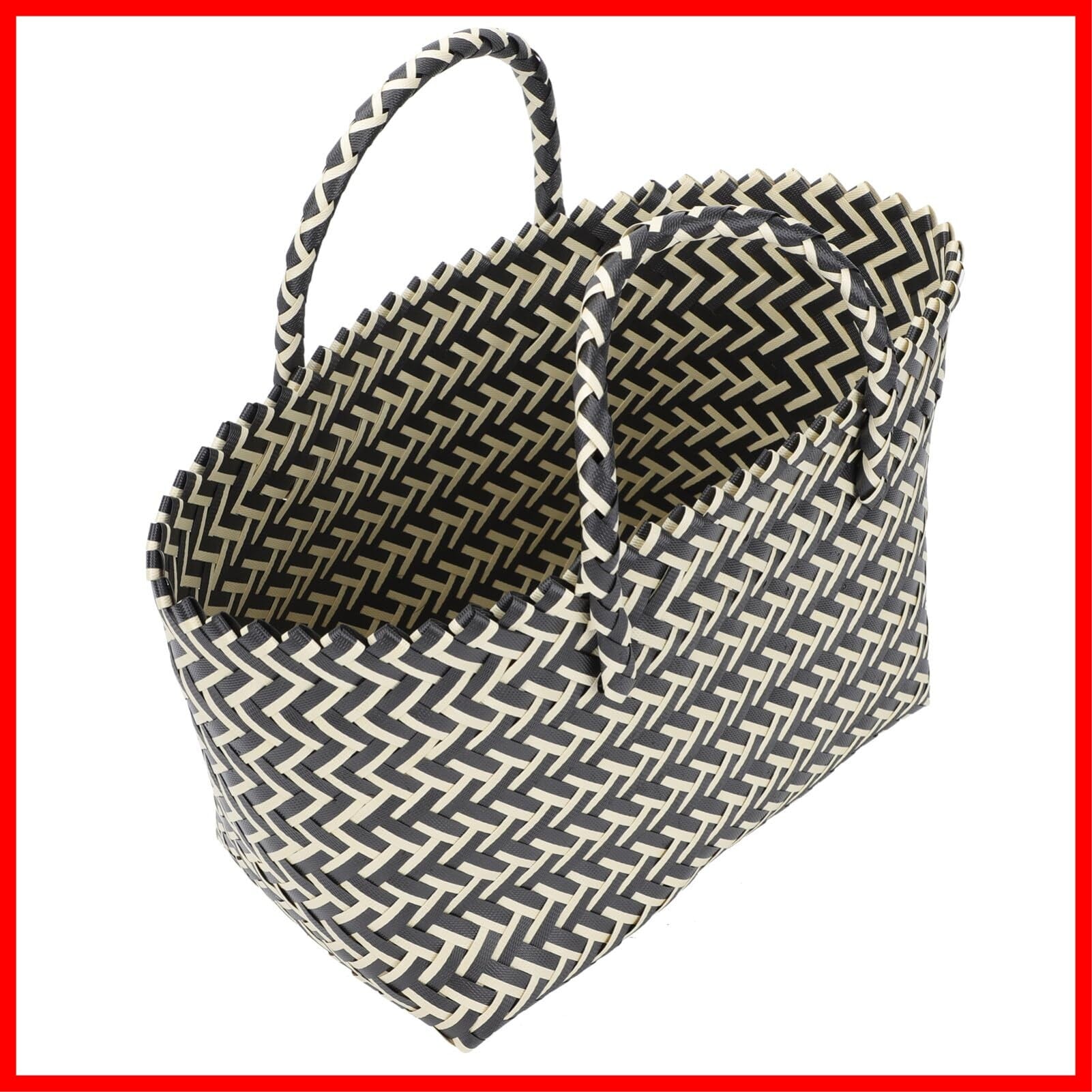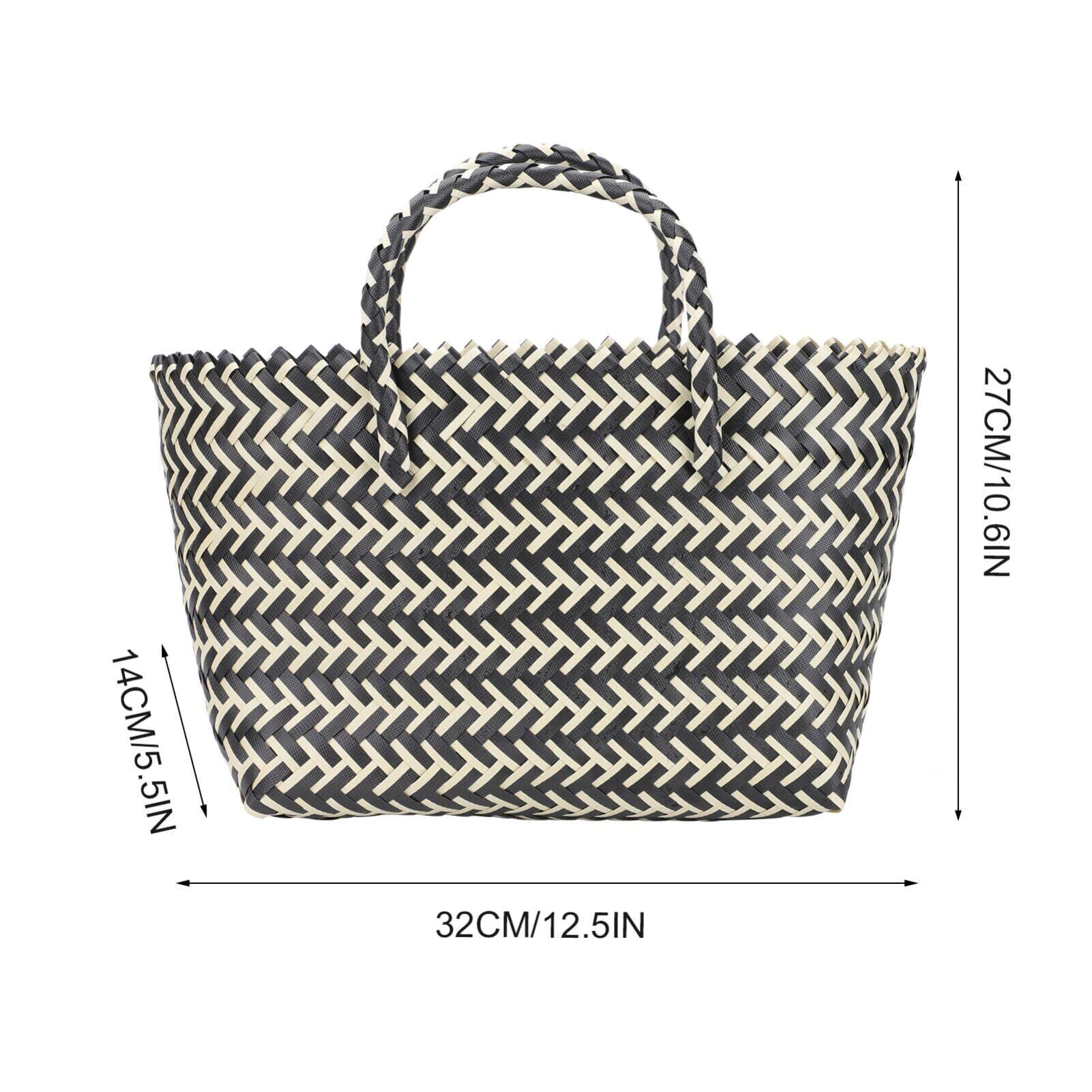 大容量のフランス製籐バスケット、手作りのストロービーチバッグ、ショッピング、野菜、ベビー用品、 、おもちゃバスケット用のハンドル付き編みショッピングバスケット ブラック