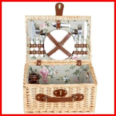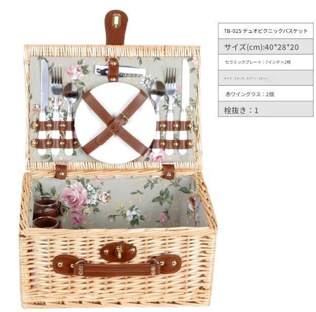 【在庫処分】Ctkp 2〜4人用のカトラリー付きピクニックセット、蓋付き籐ポータブル収納バスケット、保温用カトラリー付き屋外用籐牧歌的ピクニックバスケット (A)