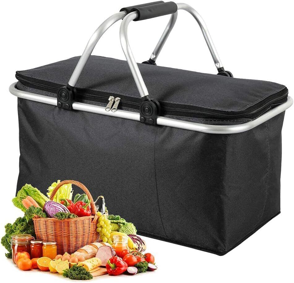 魔法瓶 ピクニックバスケット クーラーバッグ ピクニック ショッピングバッグ 折りたたみ式 保冷 断熱 防水 断熱 折りたたみ式 お手入れ簡単 アウトドア 花見 バーベキュー 釣り キャンプ ハイキング スポーツ ツアーなど (ブラック)