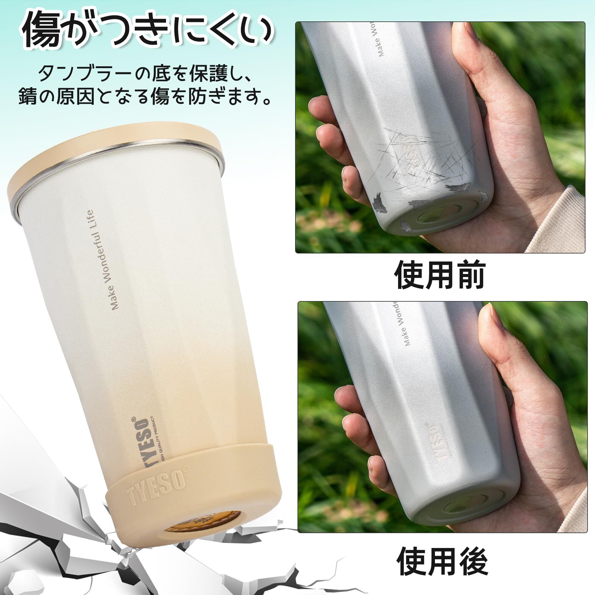 「TYESO ウォーターボトルカバー」は、水筒やタンブラーを傷から守るための必須アイテムです。シリコン製のこのカバーは、真空断熱の機能を持ち、大切な飲み物をしっかりとキープします。また、底抜け対策としても活躍し、安心してお使いいただけます。