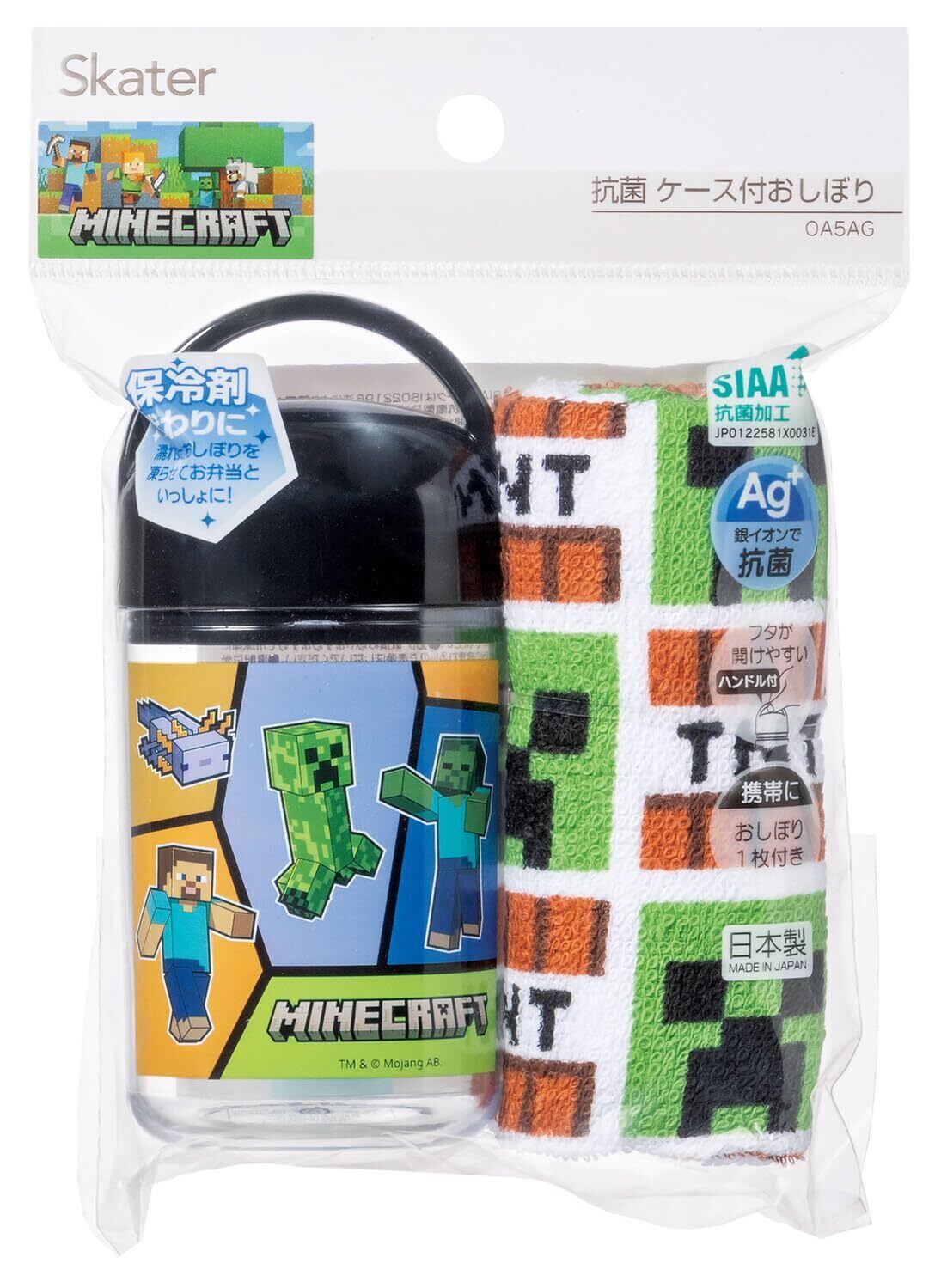 【2022最新】スケーター(Skater) 抗菌 おしぼりセット ケース付き おしぼり 32×30.5cm 日本製 マインクラフト 25 Minecraft 男の子 OA5AG