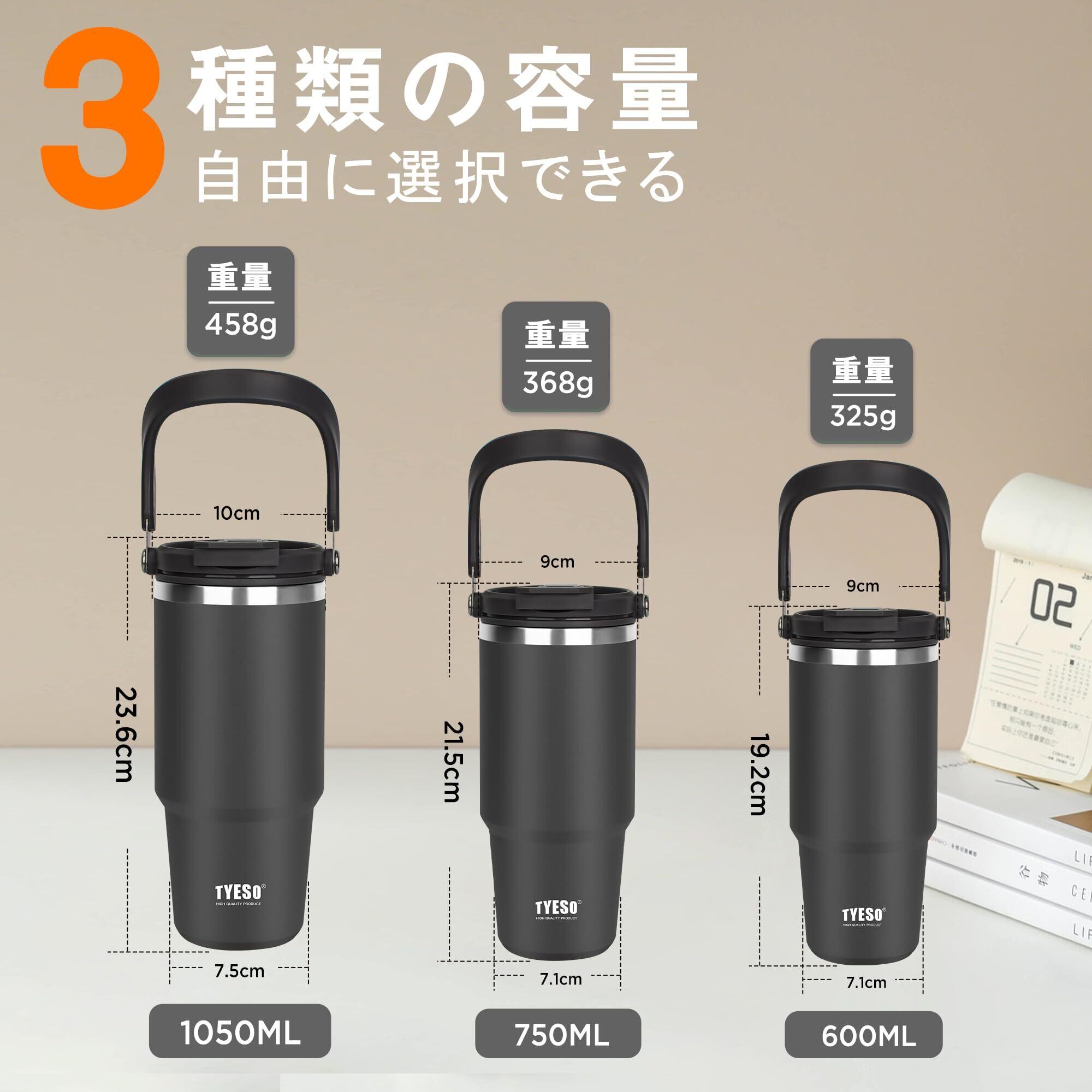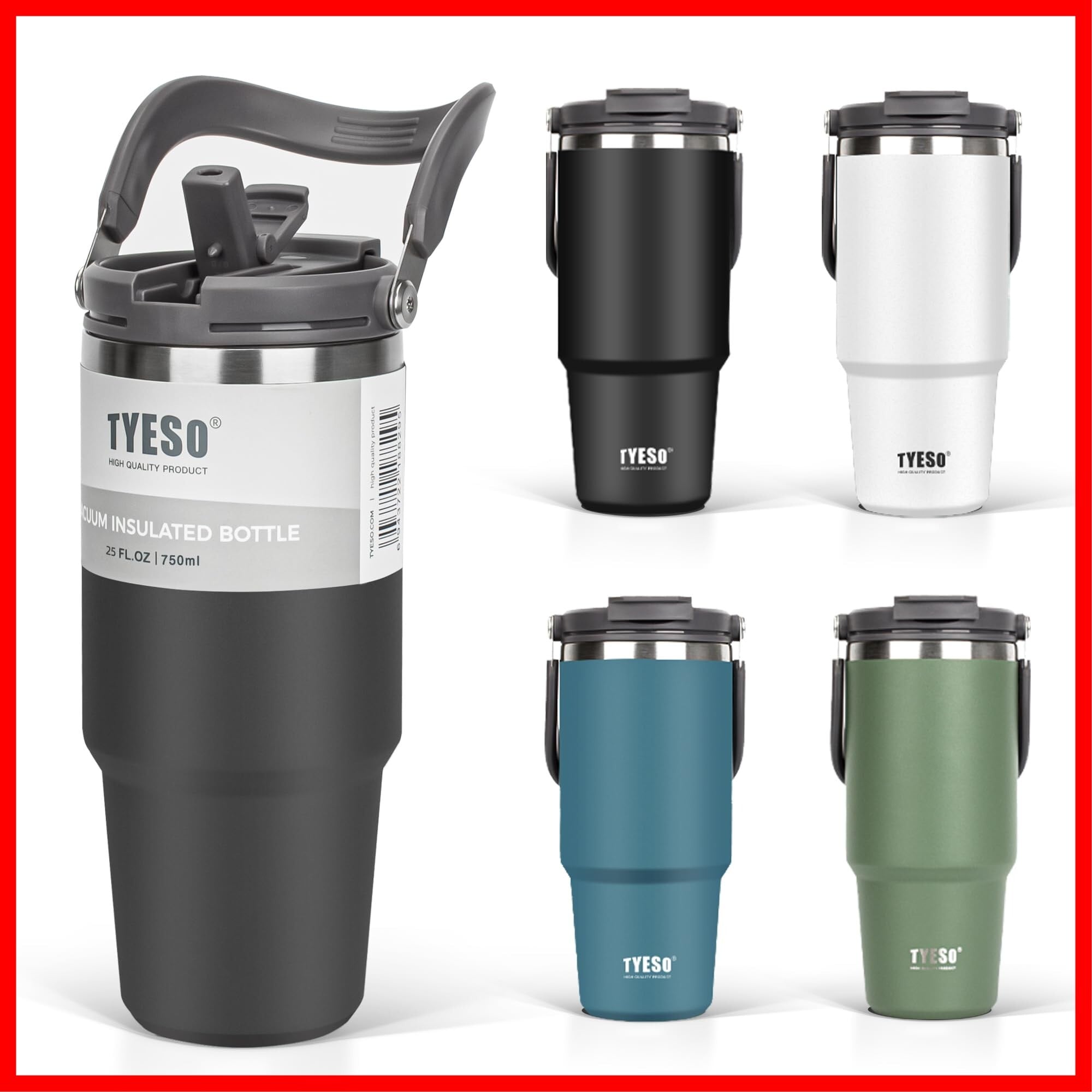 【新着商品】【持ち運びに便利な取っ手付き】TYESO タンブラー ストロー付き 750ml コーヒー 水筒 魔法瓶 保温保冷