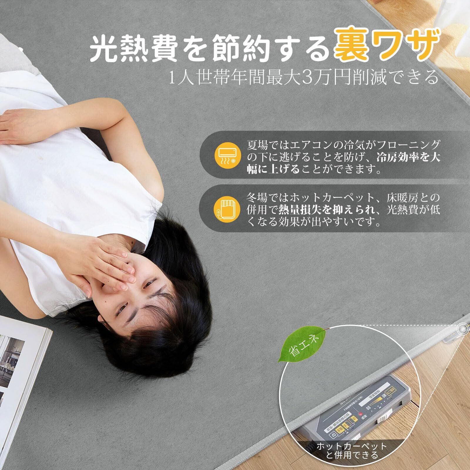 厚手のデザインは、優れた防音効果を発揮し、静かな環境をサポートします。また、防ダニ・抗菌加工が施されているため、アレルギーが気になる方にも安心してご使用いただけます。さらに、床暖房やホットカーペット対応で、オールシーズン活躍するのも魅力のひとつです。
