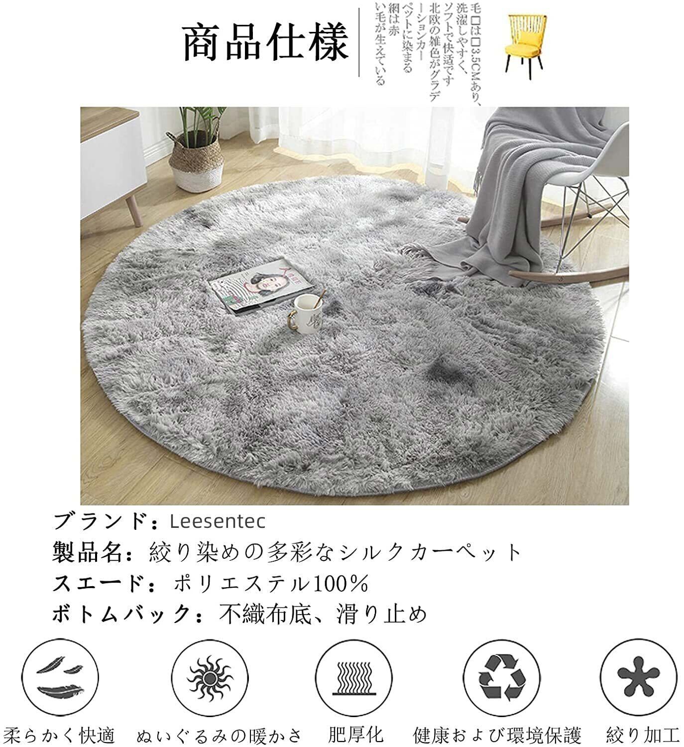 【在庫処分】Leesentec カーペット 円形 シャギー ラグ 丸 洗える ラグマット 滑り止め付 抗菌 絨毯 ふわっと手触り 優しいフランネル 北欧 ラグ 防臭 防ダニ オールシーズン 床暖房対応 (直径100cm, ライトグレー)