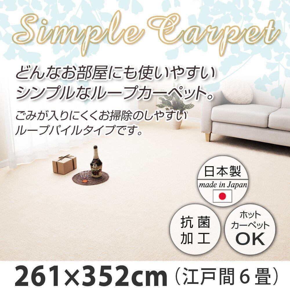 【在庫処分】抗菌カーペット 江戸間 6畳 261×352cm アイボリー 1134000080616