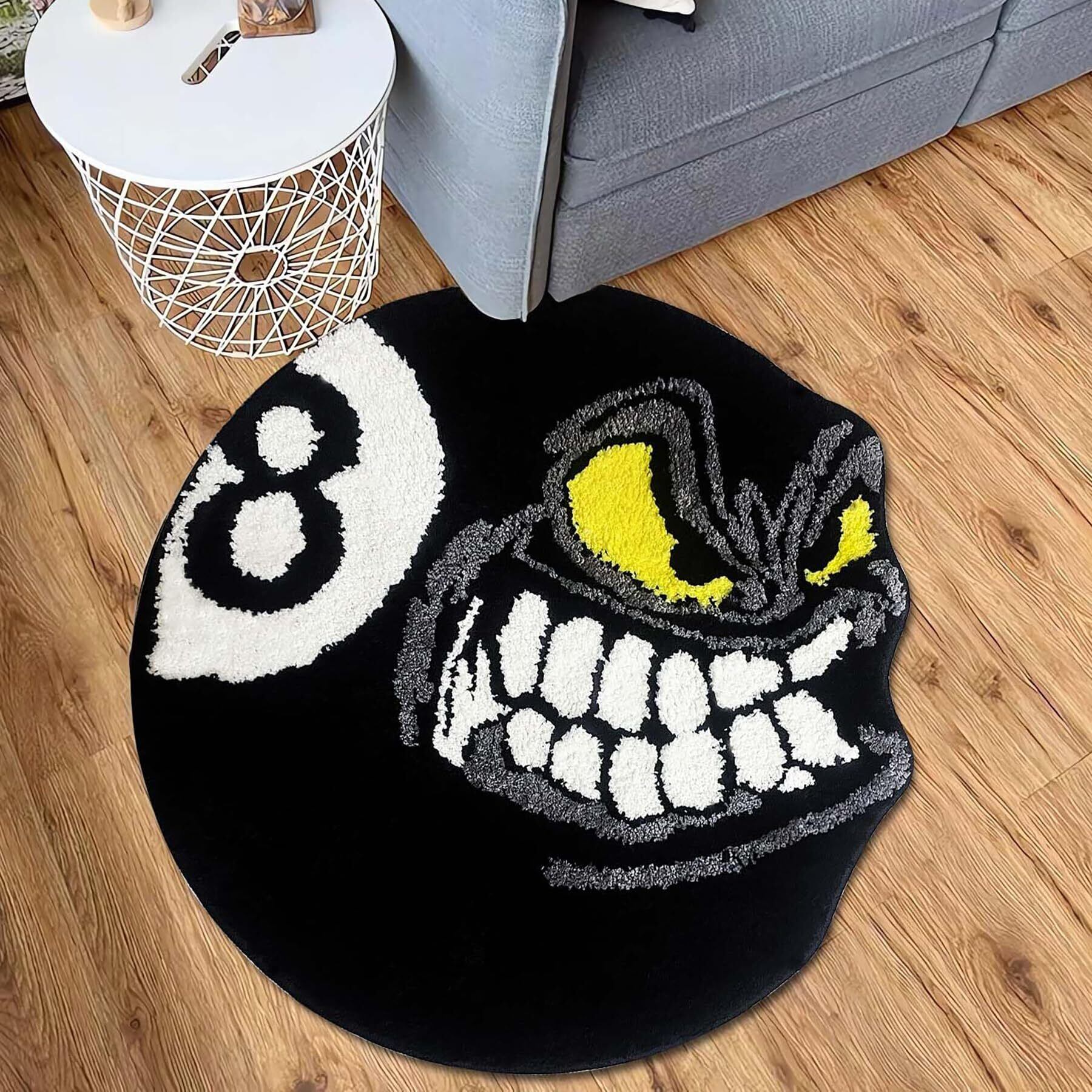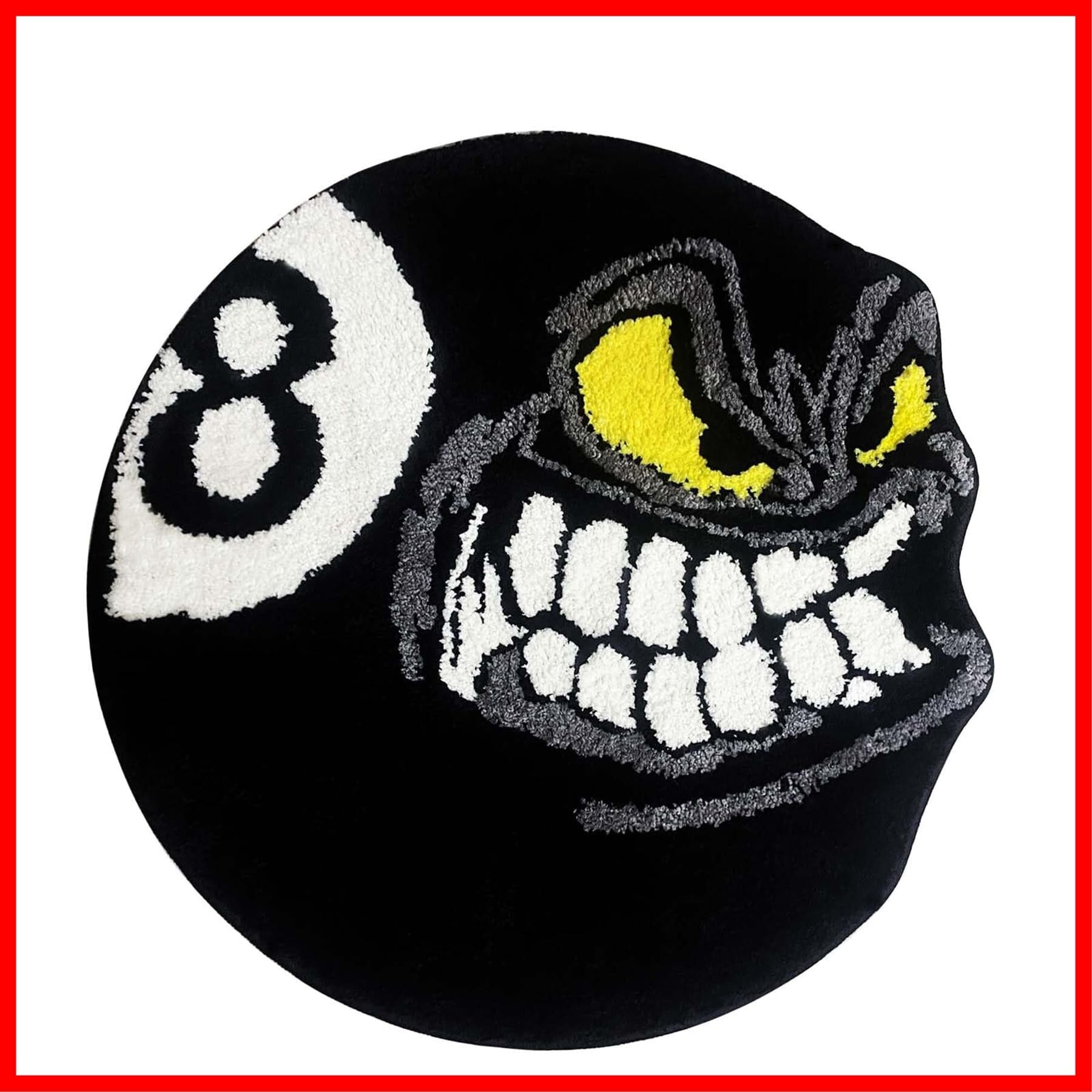 WoLraYuan 8ボール 丸型 部屋 ラグマット おしゃれ 可愛い ふわふわ 玄関 カーペット 洗える ビリヤード シャギー 円形 滑り止め オールシーズン 絨毯 (60cm)