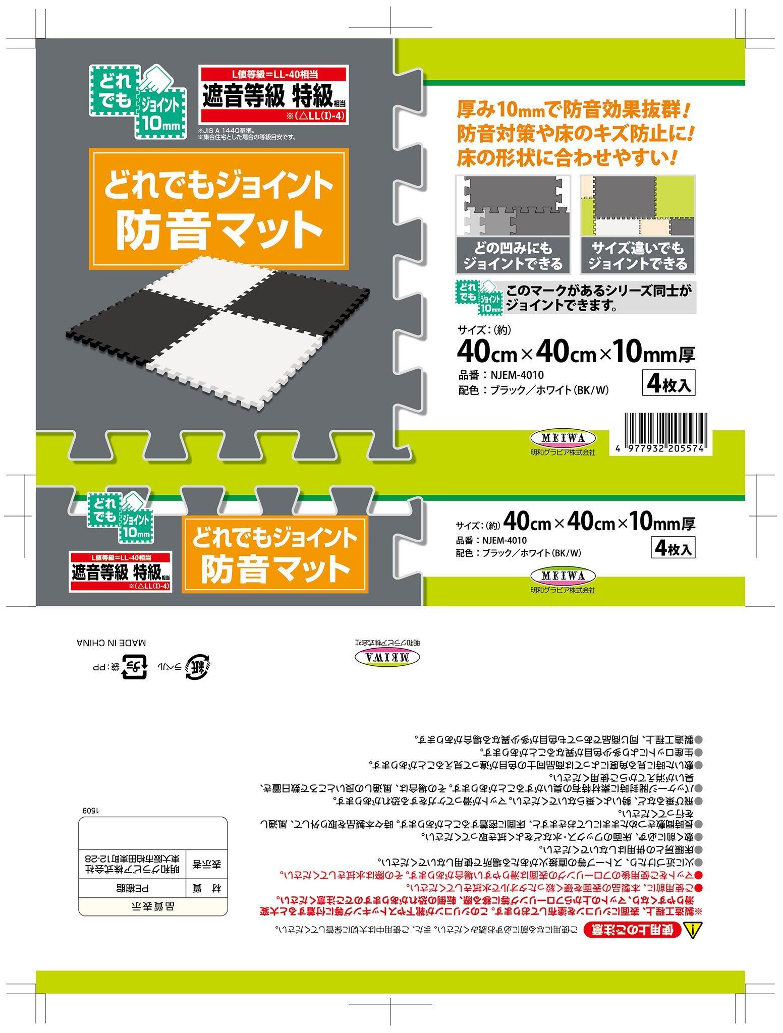 MEIWA ジョイントマット 防音 4枚入 ブラック/ホワイト サイズ(40cm×40cm×厚さ10mm) NJEM-4010