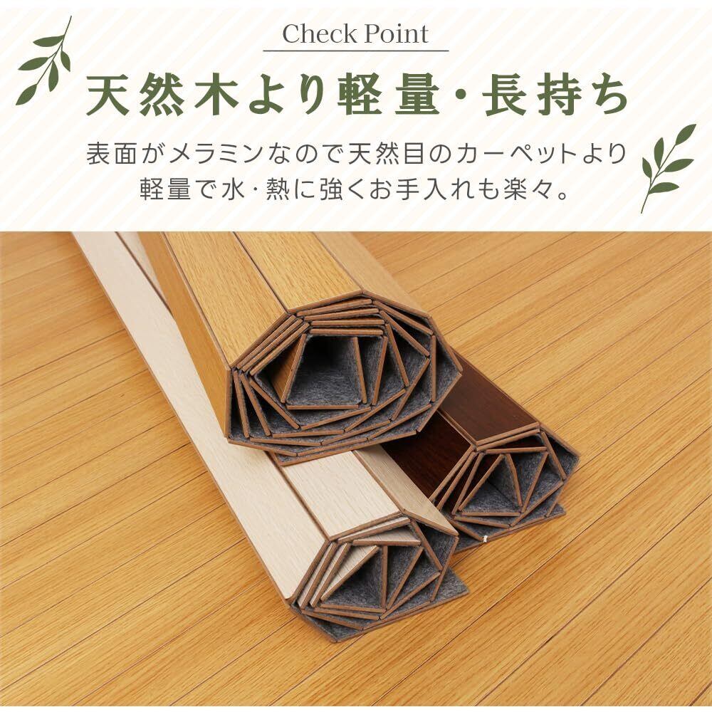 MDF材を使用したこのカーペットは、耐久性に優れており、一般的なフローリングとは異なる滑らかな感触を提供します。高品位の表面加工により、見た目だけでなく、使用感にもこだわっています。日常用の家具や小物との相性も抜群です。