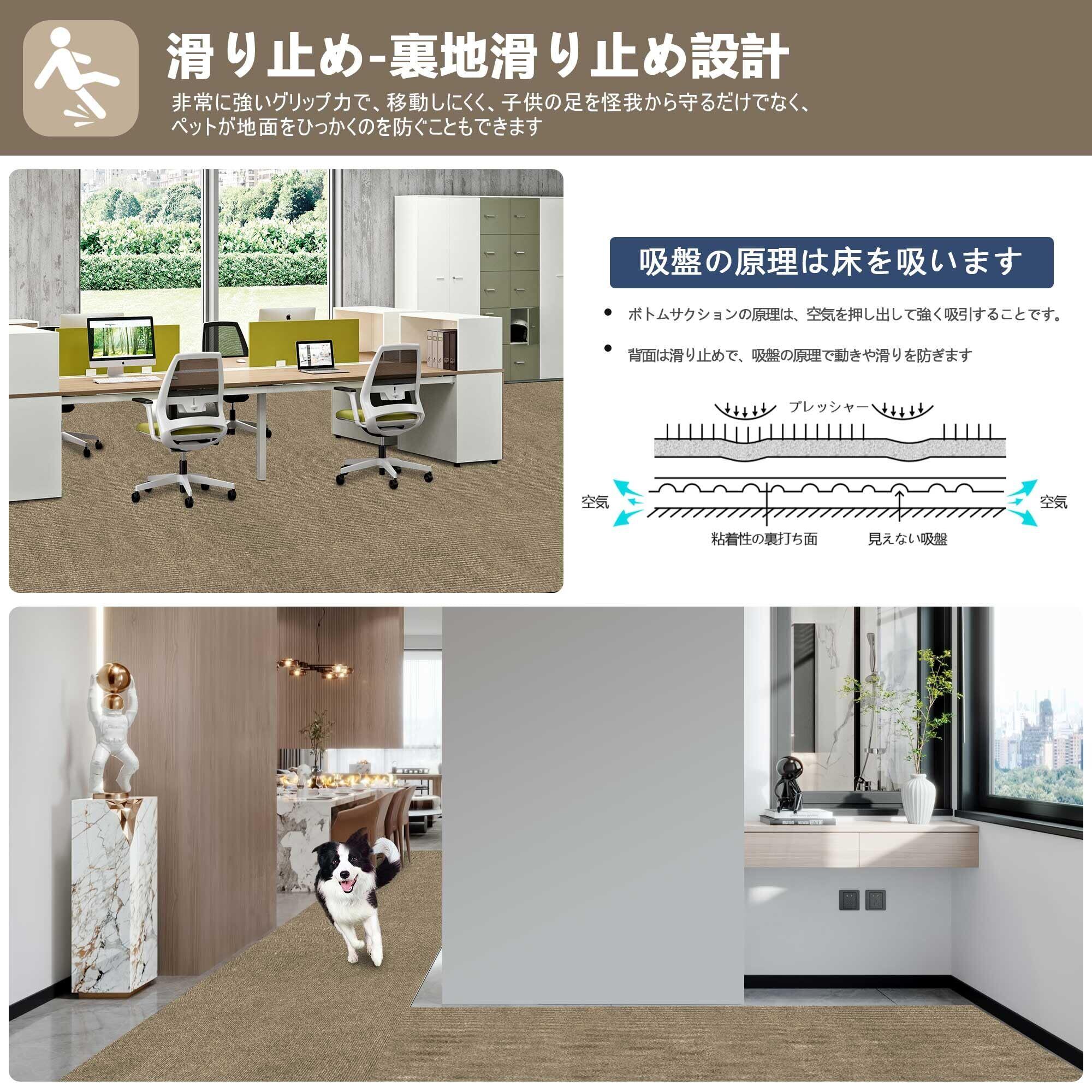 特徴:ズレない、洗える、撥水、高機能吸着、防音、無地デザイン