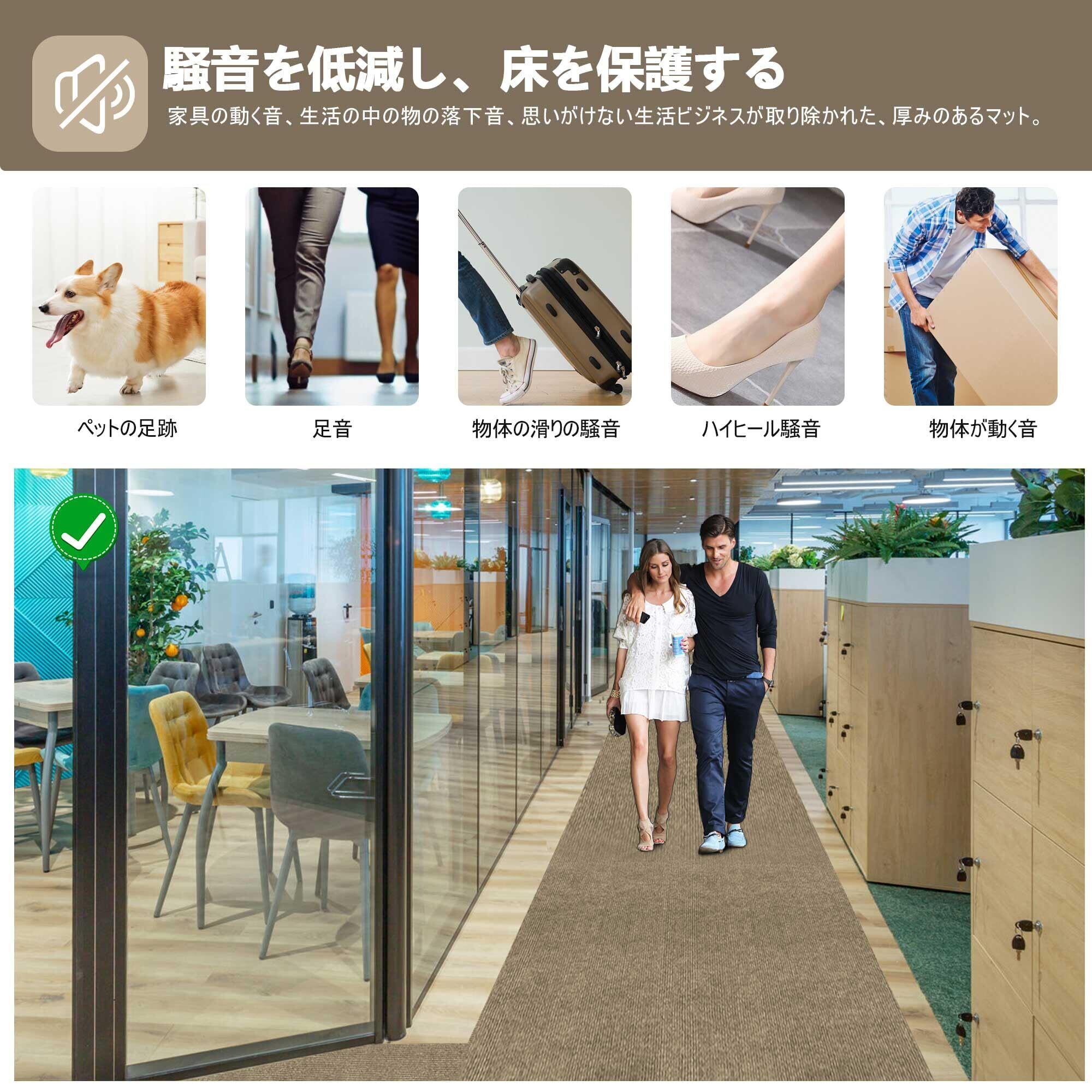 【騒音防止+傷防止】廊下マットはPUとポリエステル不織布材料を用いて作られ、吸音性に優れ、様々な場所に適している。子供が走って遊ぶ音、ペットの爪が床に当たる音、椅子の摩擦音、ゲームをする音など、小さな生活音を吸収し、騒音を低減することができます。廊下のマットの底の自己吸引材は廊下にしっかりと貼り付けられており、冬には足を保護し、冷たい床を遮断することもできます。