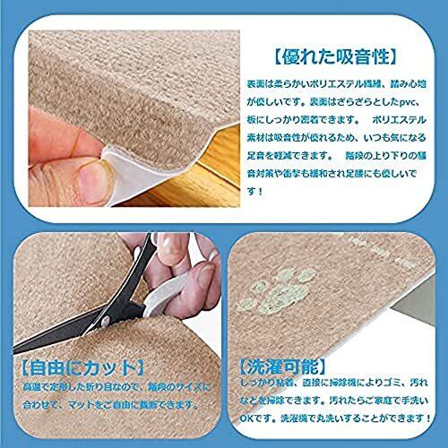 【優れた吸音性】表面は柔らかいポリエステル繊維、踏み心地が優しいです。裏面はざらざらとしたpvc、板にしっかり密着できます。ポリエステル素材は吸音性が優れるため、いつも気になる足音を軽減できます。階段の上り下りの騒音対策や衝撃も緩和され足腰にも優しいです!
