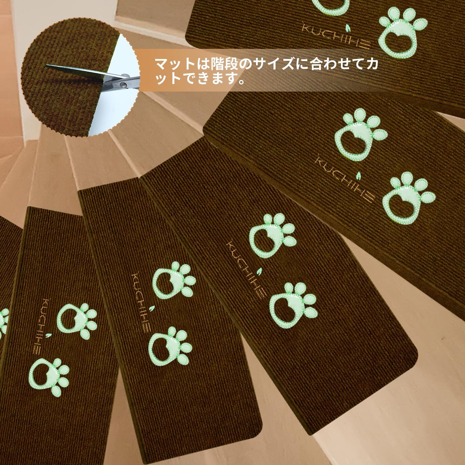 【特価セール】KUCHIHE 階段マット【約55×22cm 15枚セット】滑り止めマット 防音マット 洗える キズ防止 蛍光色 おしゃれ 吸着マット 騒音対策 厚さ4.5mm (ブラウン)