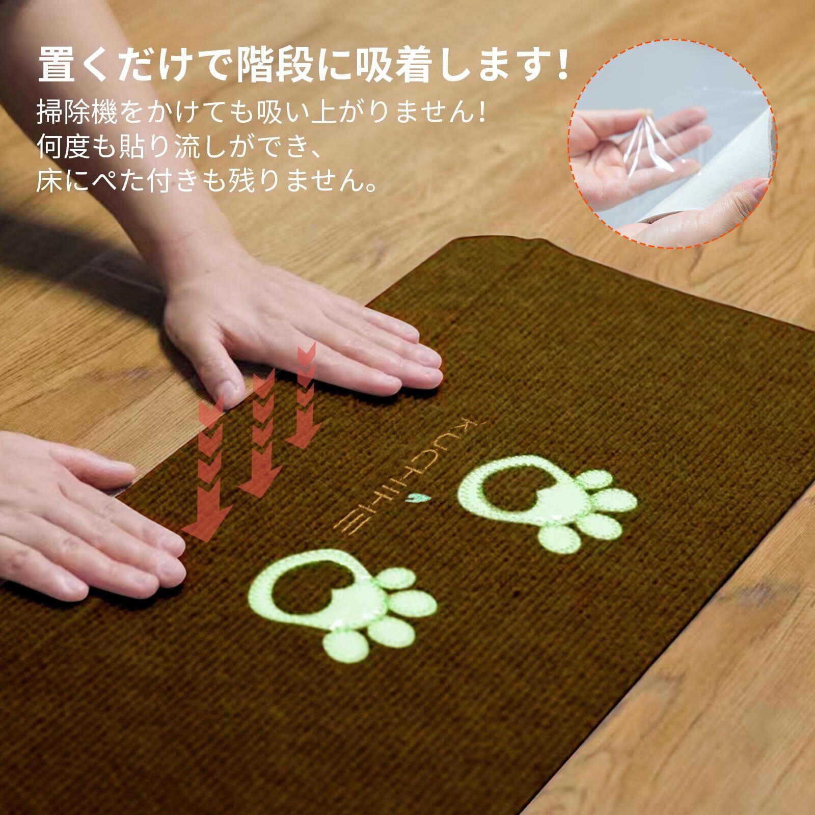 「KUCHIHE 階段マット」は、安全性を重視したデザインが魅力の商品です。約55×22cmのサイズは、多くの階段にぴったりとフィットし、滑り止め機能によってペットや小さなお子様でも安心して利用できます。転倒のリスクを軽減し、安心して階段を上り下りできます。