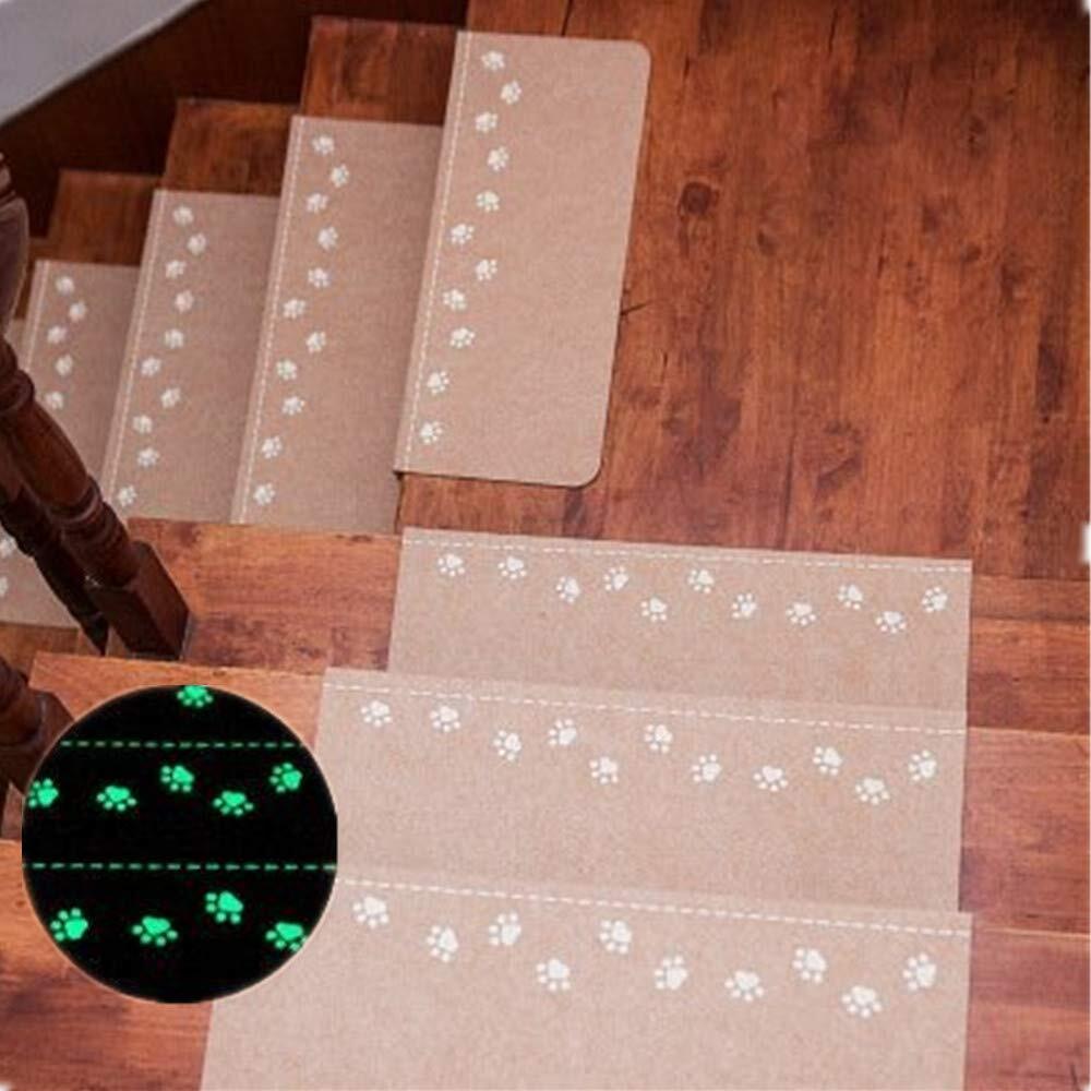 (裏面は吸着性特殊合成ゴム使用)手軽に施工できる吸着タイプの階段マットです、。厚手でしっかりした生地を使用しているので防音効果もあり。階段マットを敷いてお子供・お年寄り転倒防止に、ペットの爪キズ防止にも適用、表面は蛍光材質ですので、電気消してもしばらく見えますので安心!(太陽光や蛍光灯の光をあてると、夜になる発光します。)