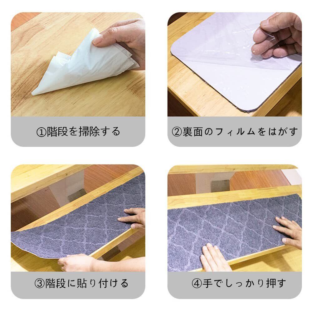 【在庫セール】YMR 階段マット 階段 滑り止め マット 折り曲げなし 防音 オシャレ キズ防止 洗える ずれない 四季通用 吸着 15枚セット (darkgray) | Cherry Blossoms