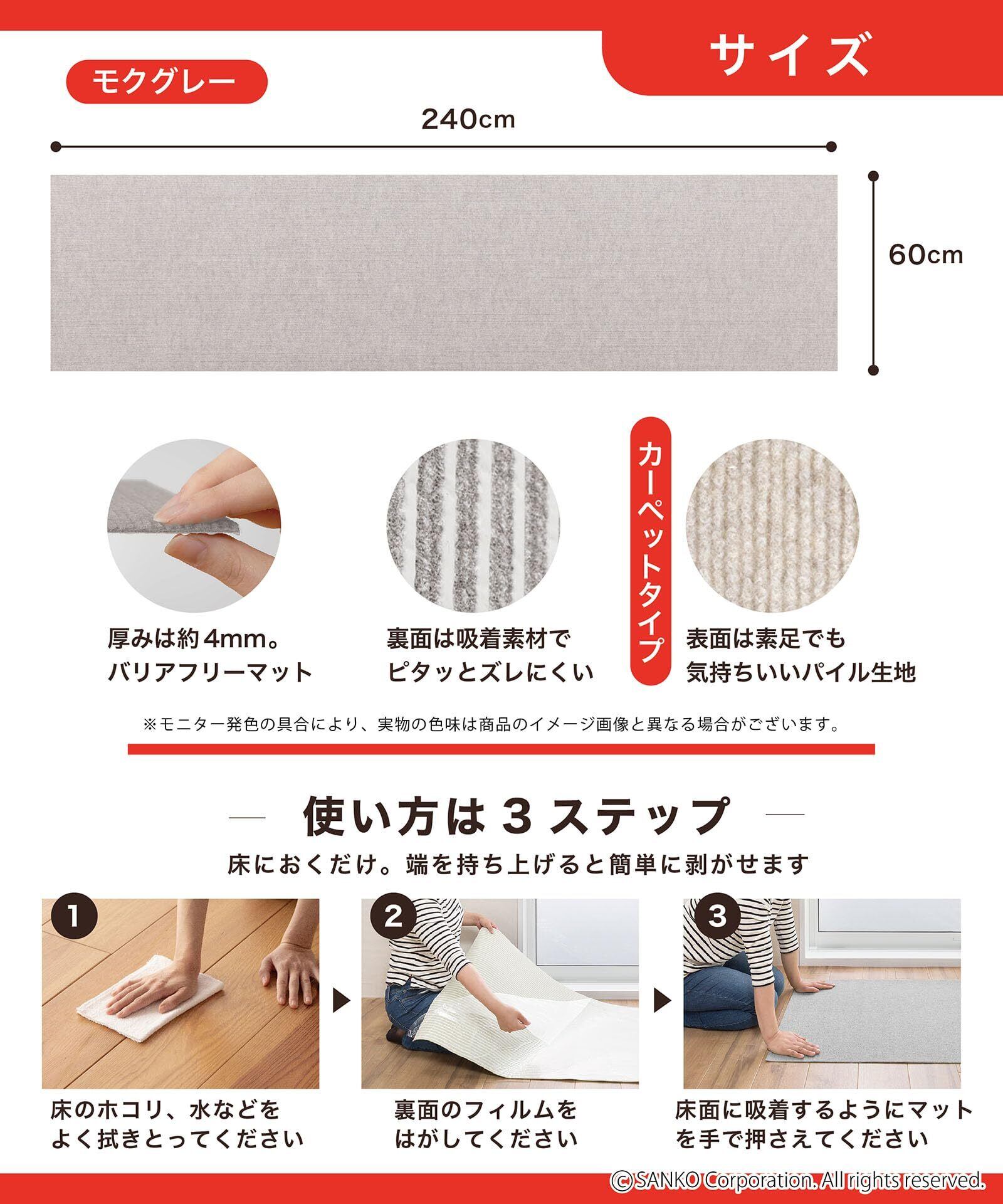 SankoPet ペットマット このコ想いのロングマット 60×240cm モクグレー ズレない 洗える 日本製 おくだけ吸着 カーペットタイプ KZ-01
