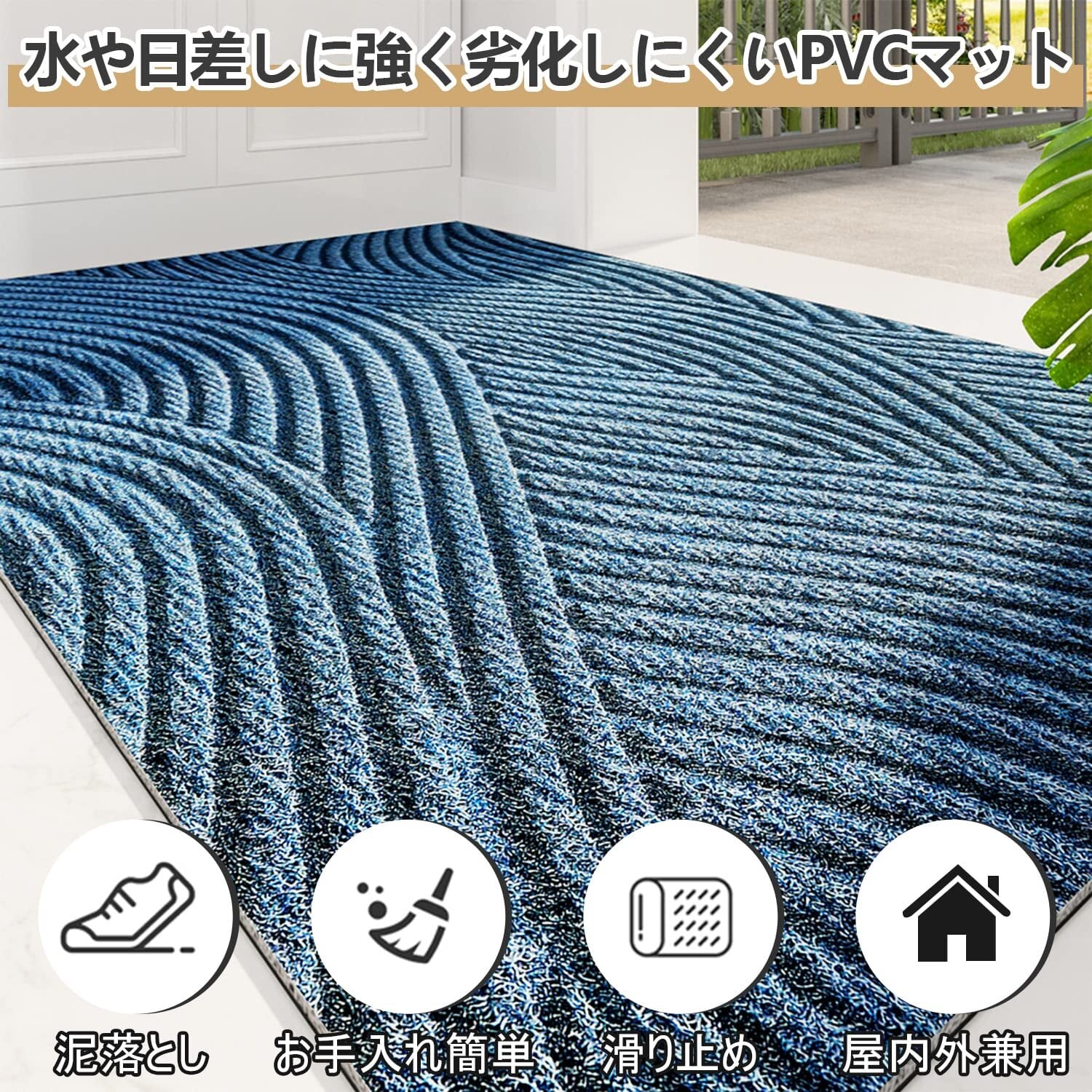 高品質なPVC素材を使用しており、水や日差しに強く、屋外でも安心してご使用いただけます。特に雨の日でも機能を失うことなく、玄関周りを快適に保ち続けます。