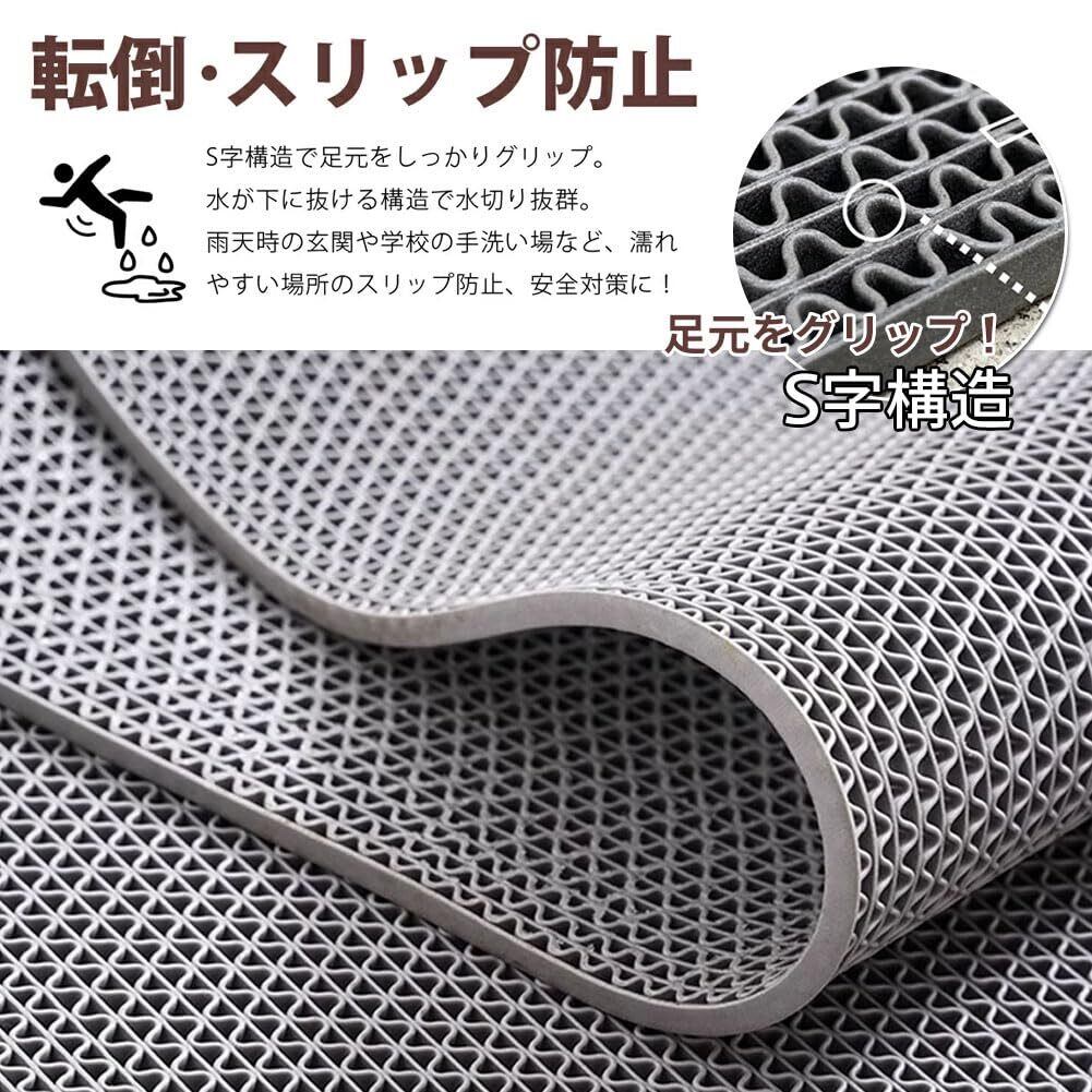 このマットは、屋外だけでなく屋内でも幅広くお使いいただけるため、家庭用はもちろん、業務用としても非常に便利です。玄関、洗い場、浴室、通路、ベランダなど、さまざまなシーンで活躍します。