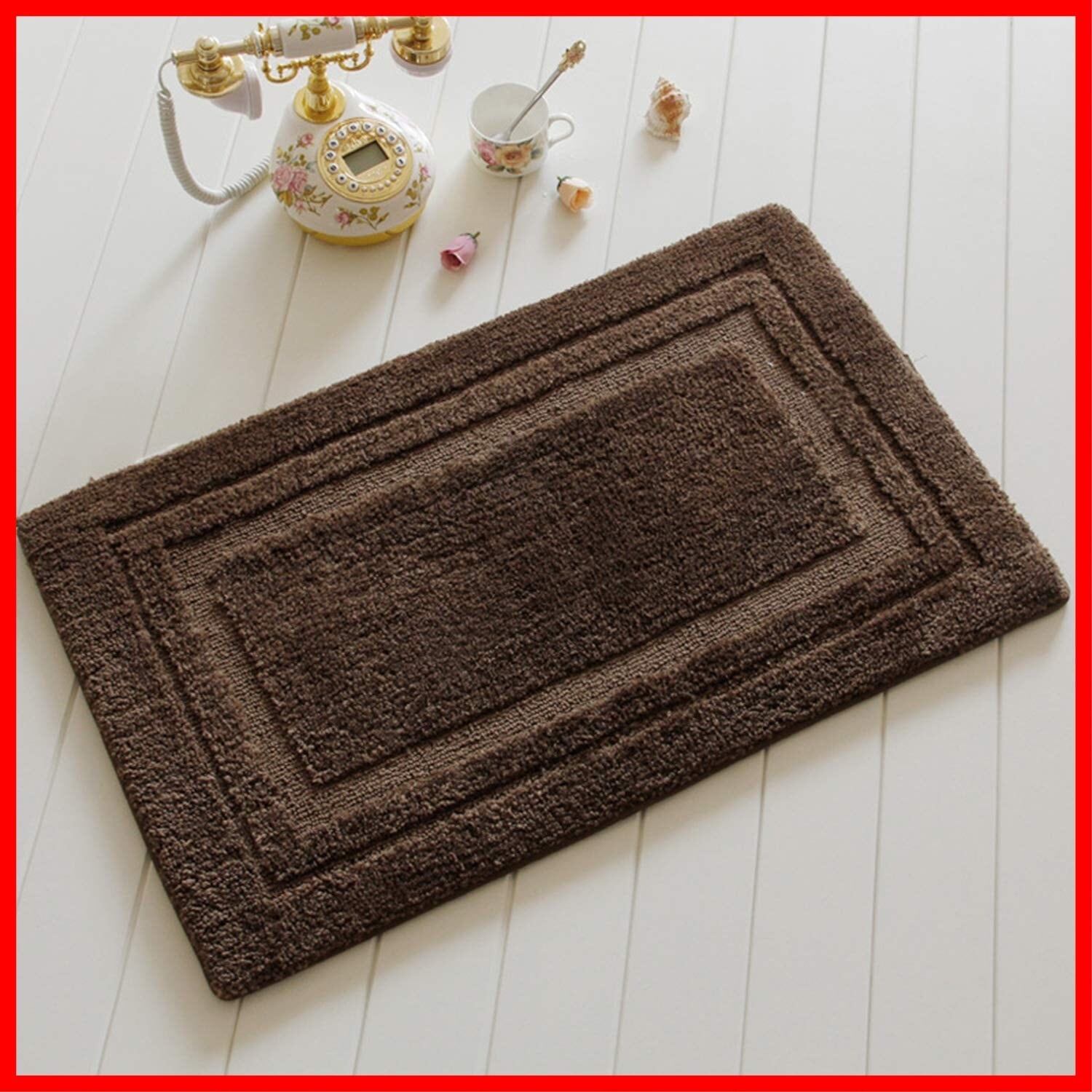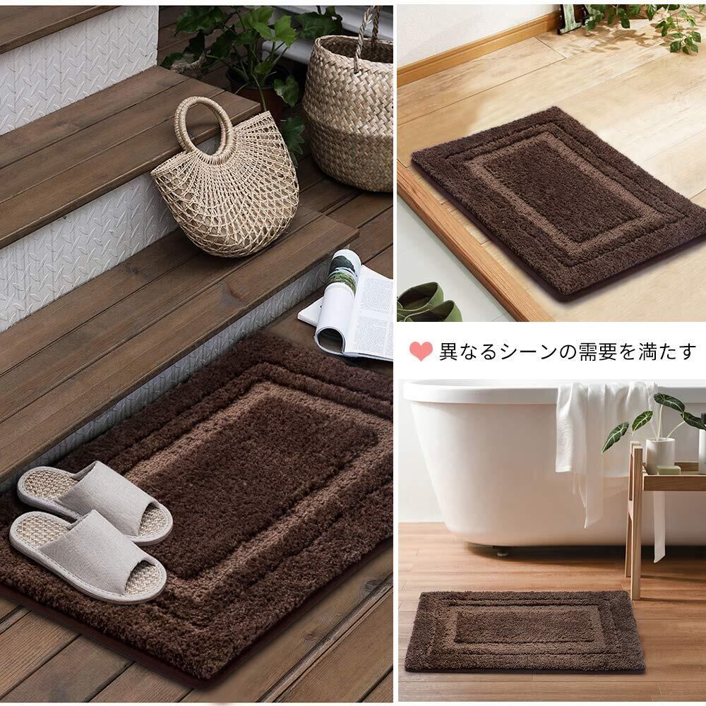 【在庫セール】玄関 マット40cm*60cm北欧 バスマット 足ふきマット 速乾 吸水 抗菌 防カビ ふわふわ 丸洗い 廊下 洗面台 寝室 屋内 室内 風呂 浴室 滑り止め バスマット 茶色(ブラウン, 40cm*60cm) | Cherry Blossoms