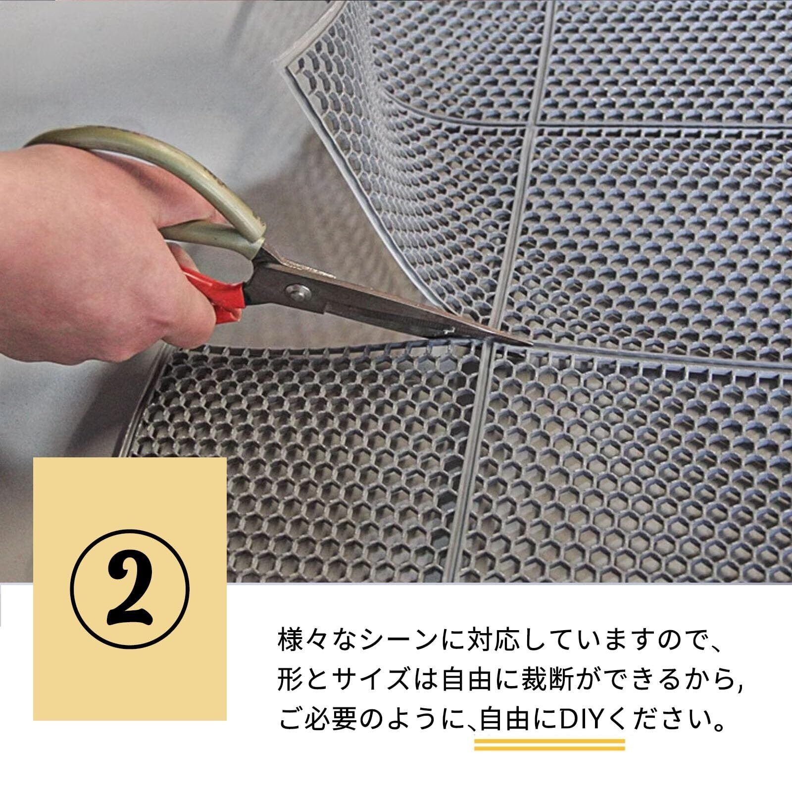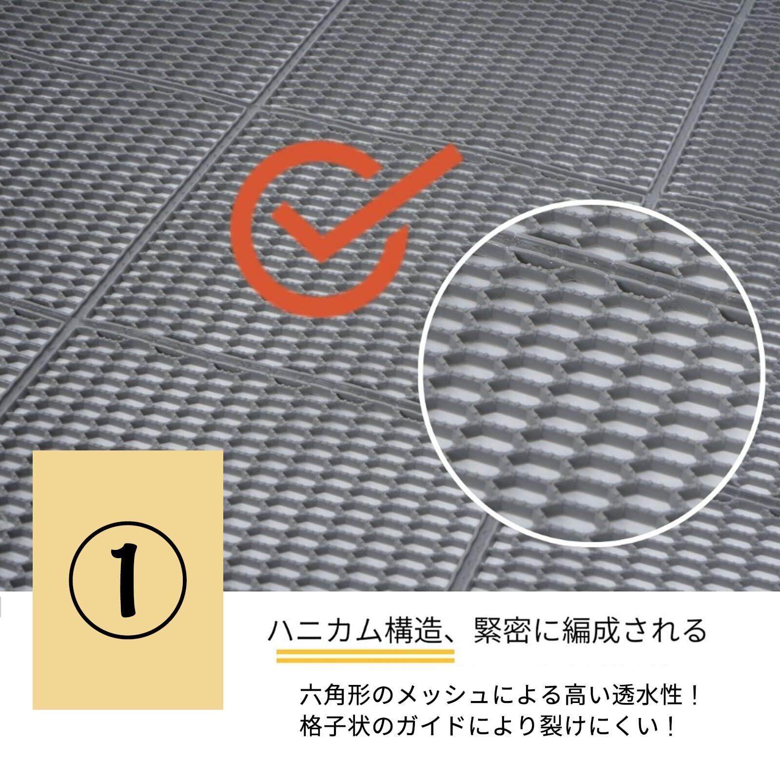 このマットは、玄関や駐車場だけでなく、プールサイド、庭、洗い場など、幅広い場所で使用できます。シンプルなデザインながら機能性を重視したこのマットは、生活空間をより快適に演出します。