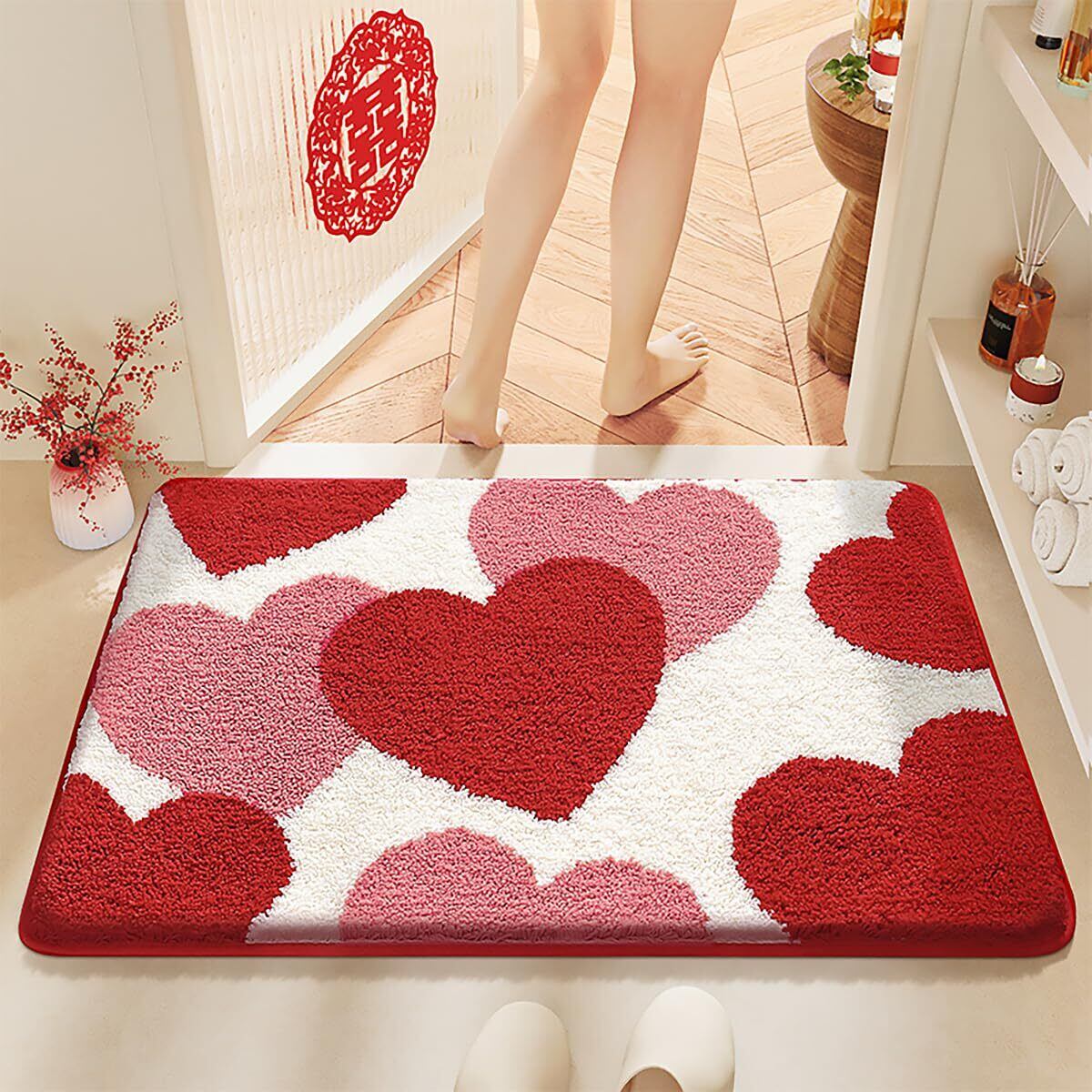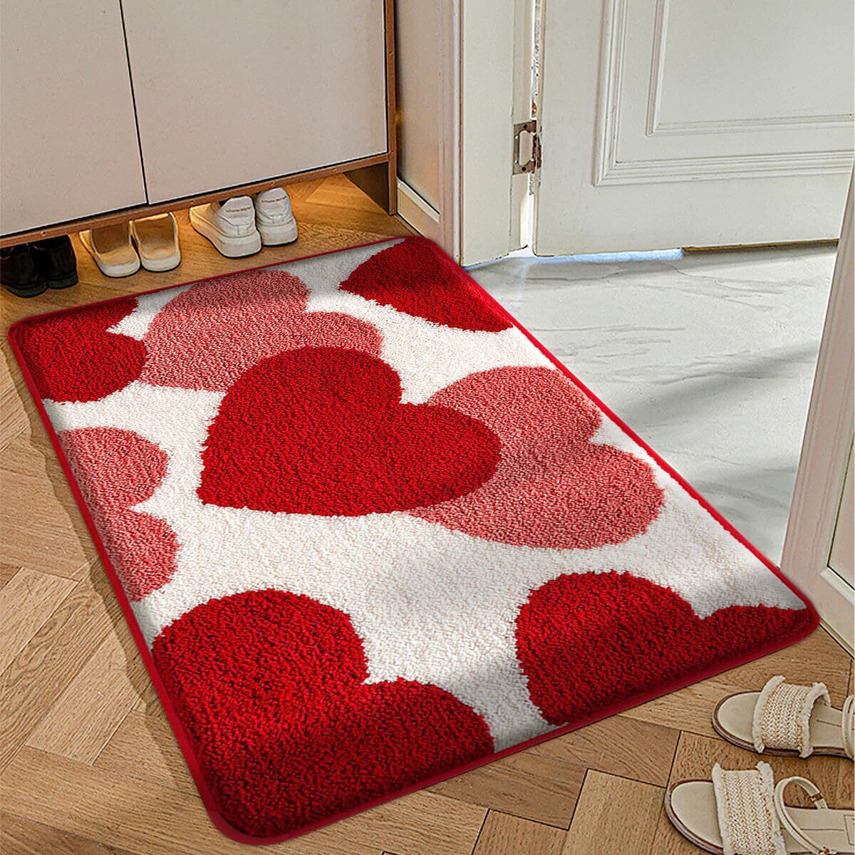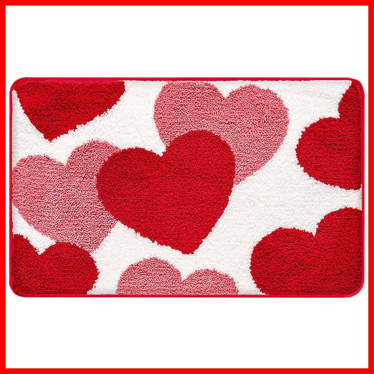玄関マット 室内 おしゃれ 北欧 ドアマット バスマット 足拭きマット 家庭用 ふわふわ 柔らか 花嫁 結婚式 風水 恋愛運 インテリア 滑り止め 吸水 洗える 速乾 抗菌防臭 耐磨耗性 (ピンク+レッド, 40×60cm)