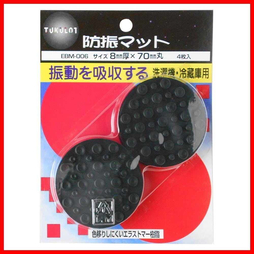 和気産業 防振マット 洗濯機・冷蔵庫用 丸 黒 厚さ8X直径70mm 電化製品 振動 吸収 EBM-006 4枚入り