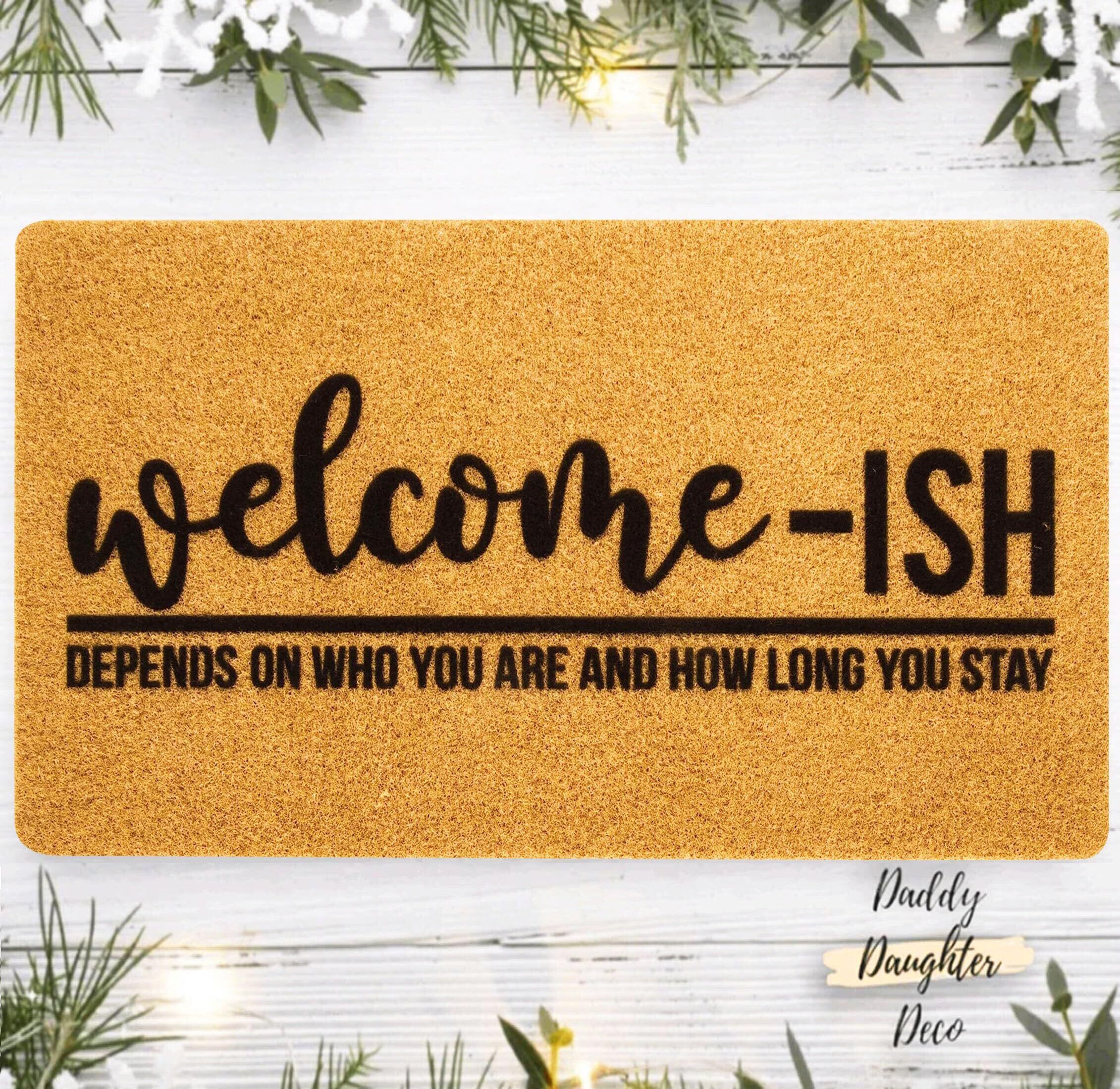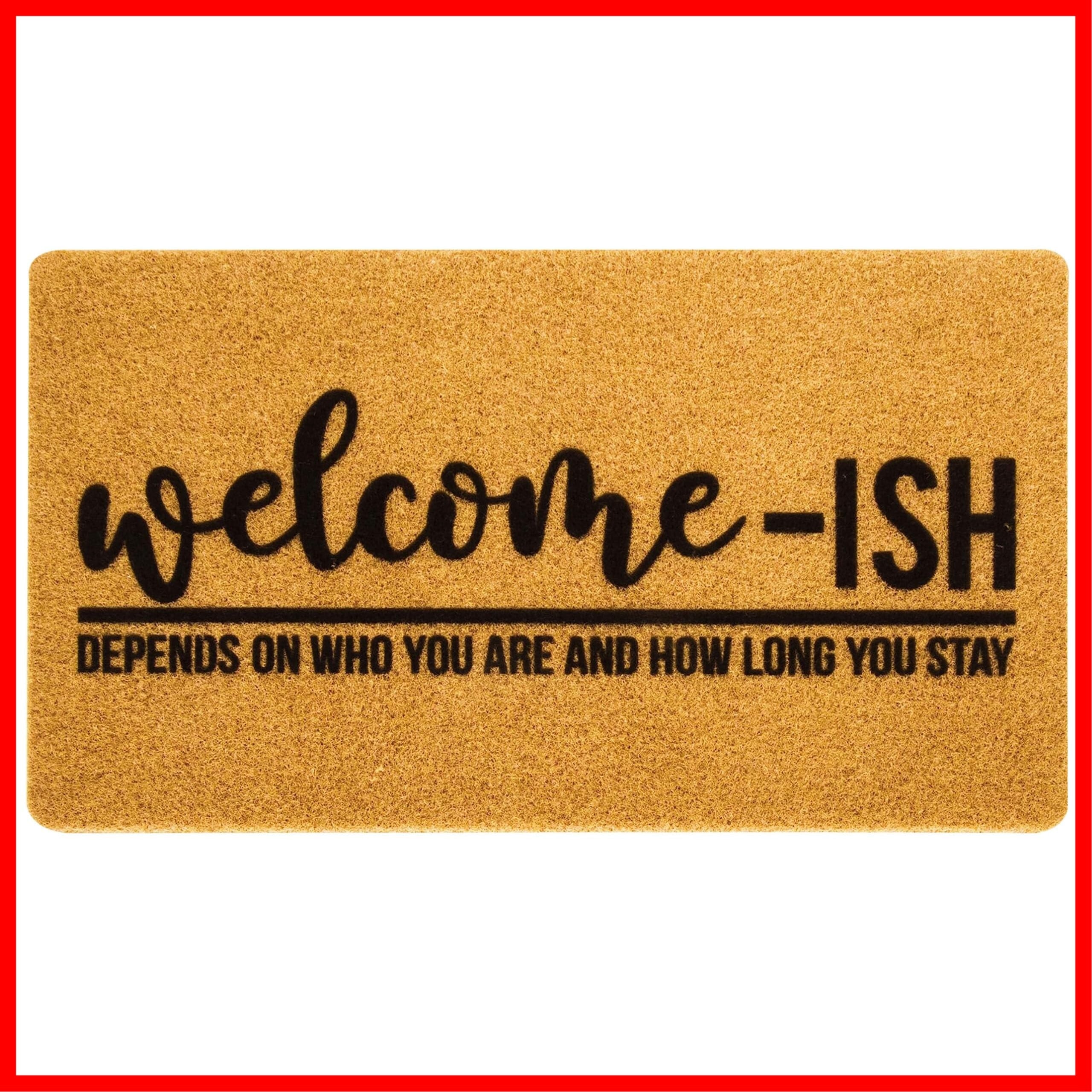 CaySep Welcome-Ish フロントドアマット - Welcome-Ish Depends Who You are ドアマット ノンスリップバッキングマット ホームエントリー ファームハウス 17x29インチ