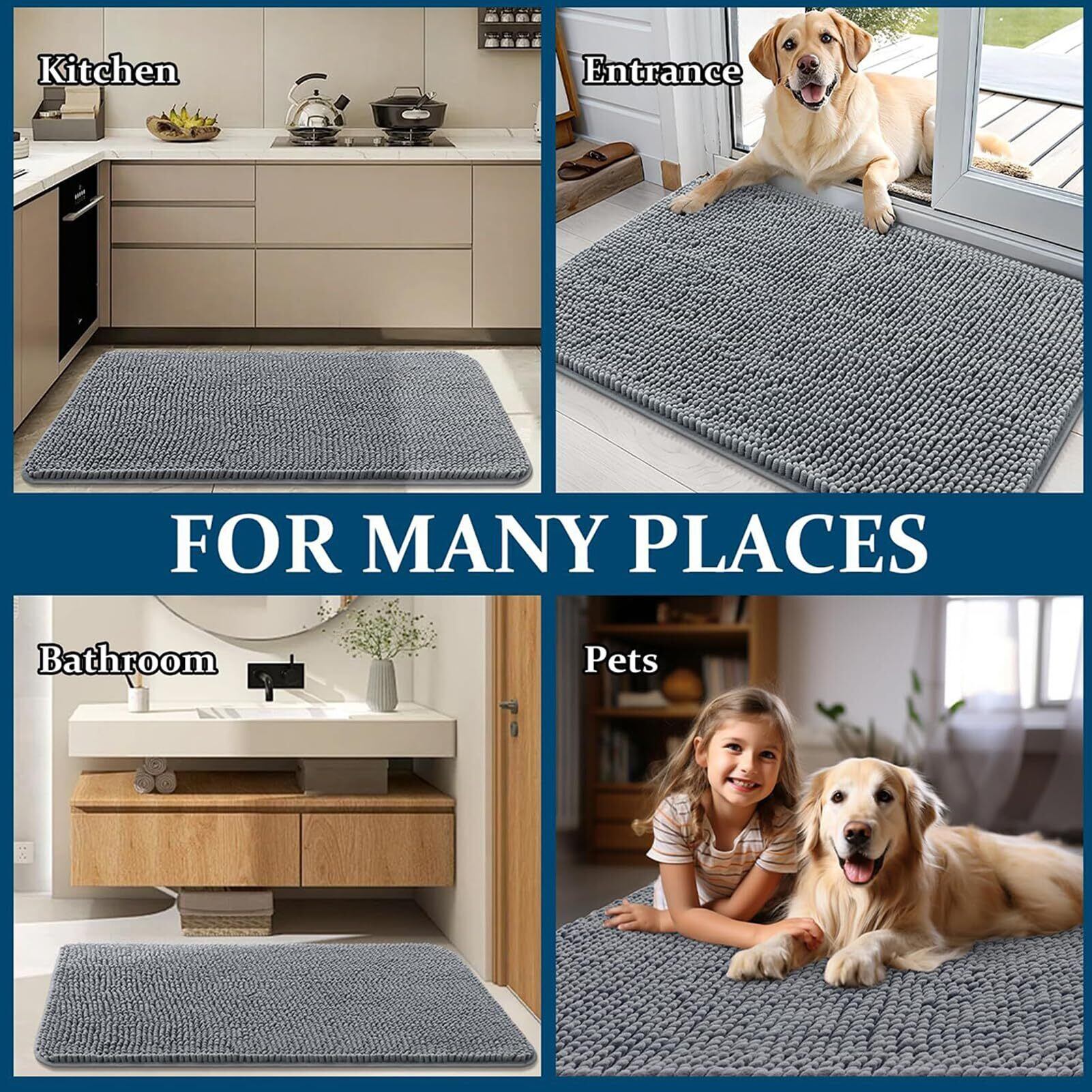 広範囲適用: 泥付き足跡を想定した多目的マット。キッチンや共有スペースなど設置場所を選ばず、床の水気・汚れをブロック。インテリアを邪魔しないシンプルな防汚システムとして活用可能