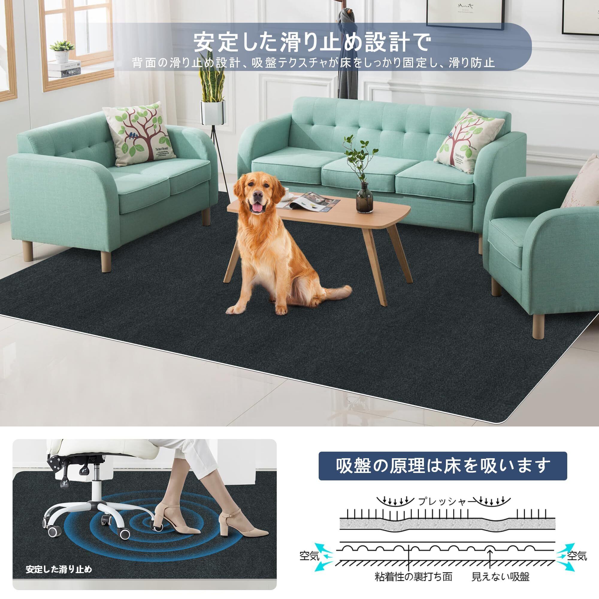 特徴:吸音、防音、引っ掻き防止、滑り止め
