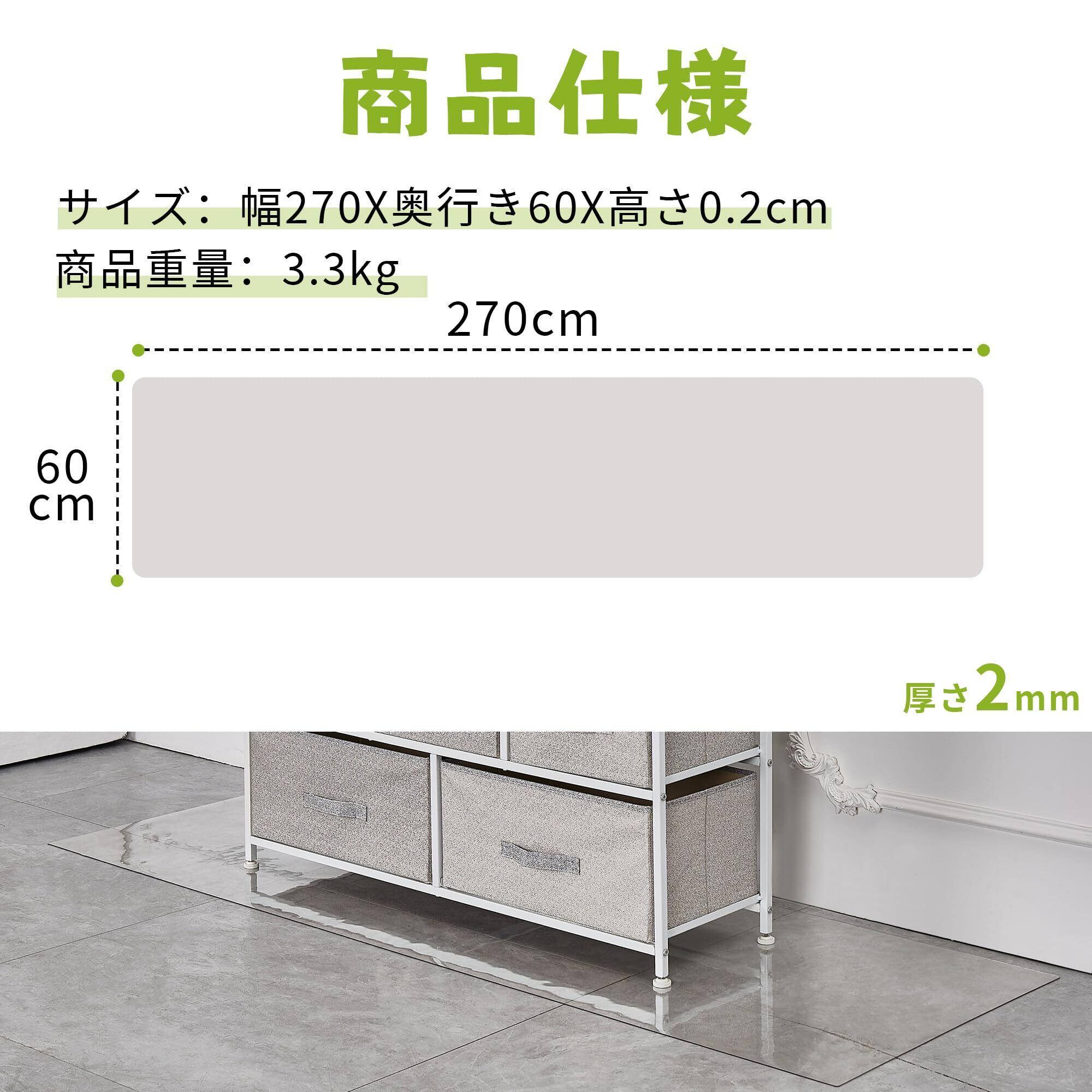 VECELO 床保護マット チェアマット 幅270X奥行き60cm 吸音 透明 防水 家具保護 凹み防止 防カビ 床傷防止マット 特大サイズ 滑り止め 床キズ防止 床暖房対応 無味無臭 お手入れ簡単 冷蔵庫マット フロアマット
