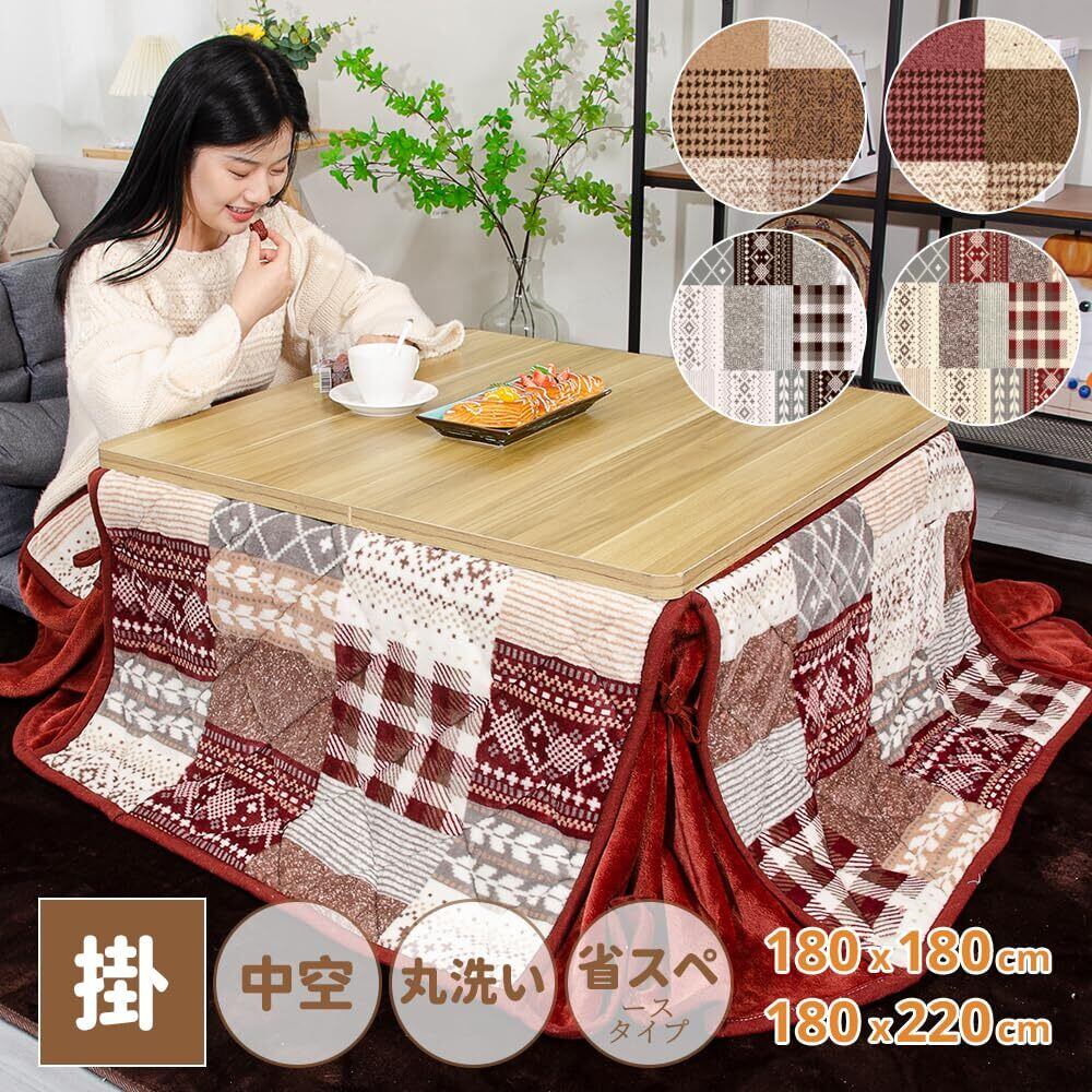 JEMA こたつ布団 省スペース こたつ掛け布団 長方形 こたつ用布団 スリットデザイン 洗える フランネル生地 おしゃれ フランネル あったか なめらか180x220cm パッチワーク レッド