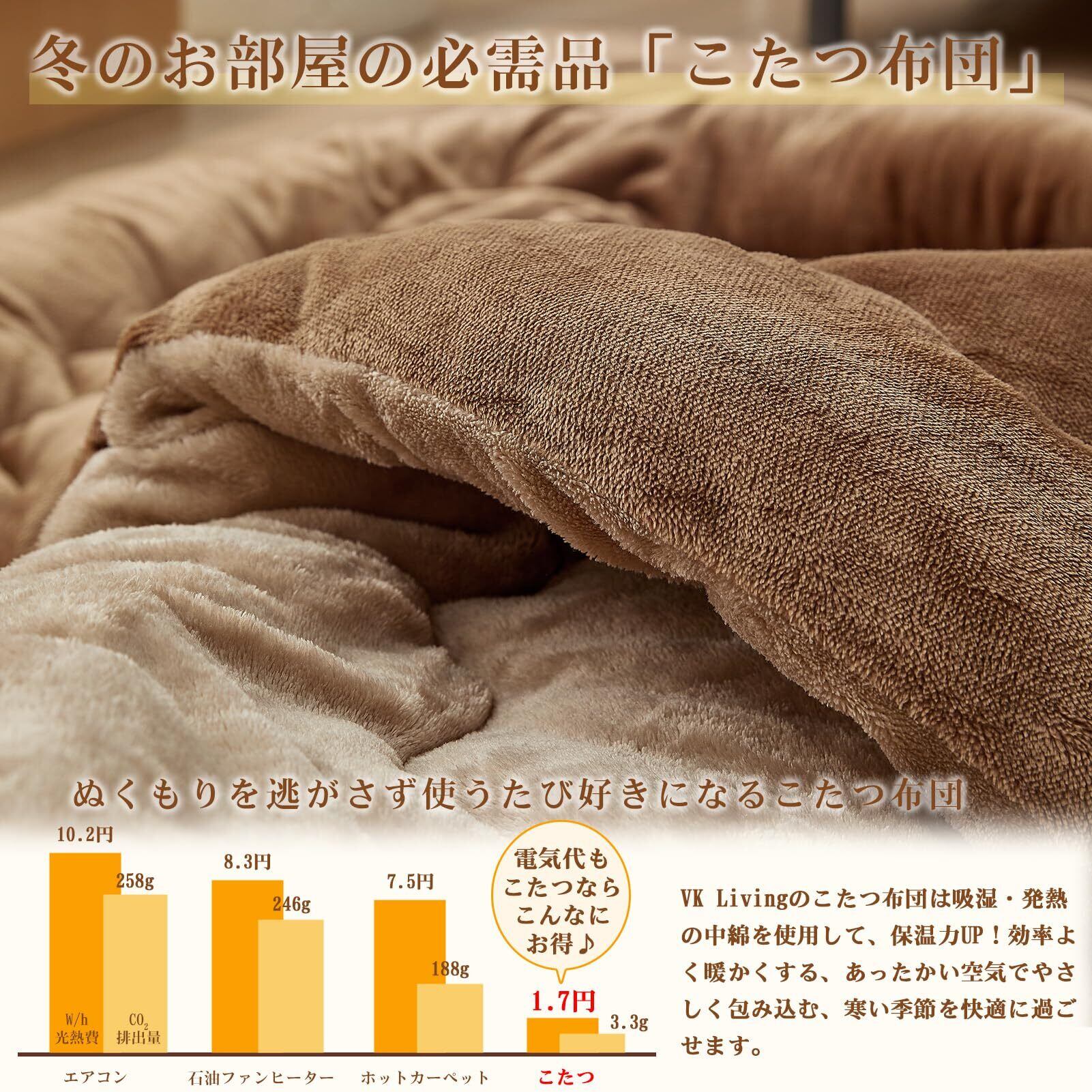 ■この「VK Living こたつ布団」で、寒い冬のひとときを暖かくお過ごしください!在庫が限られていますので、お早めにお求めください!■
