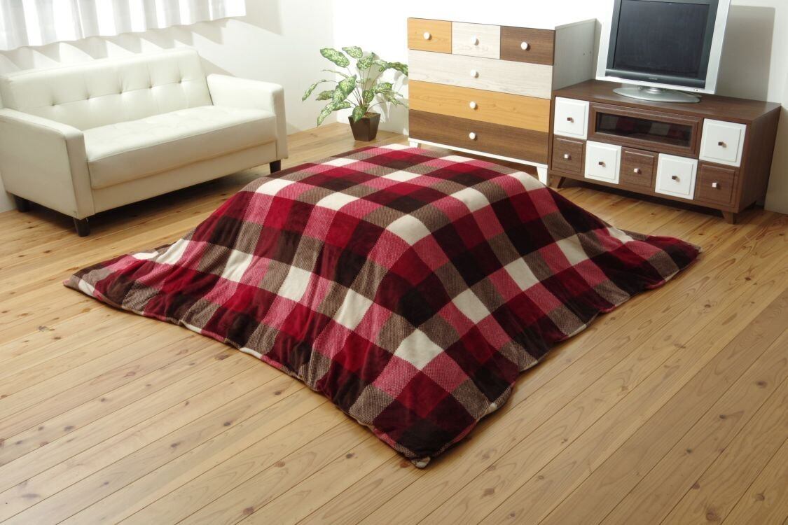 「イケヒコ こたつ布団カバー」は、195×195cmの広々としたサイズで、家族や友人との楽しい時間をおしゃれに演出します。鮮やかなレッドのチェック柄が印象的で、冬のお部屋に温かみをプラスします。