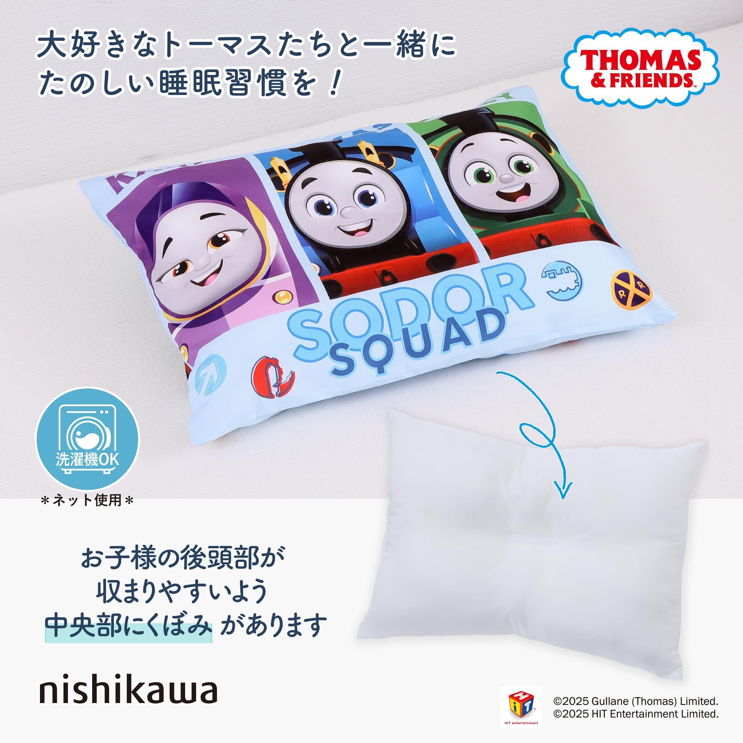 【新着商品】nishikawa【西川】 きかんしゃトーマス トーマスジュニアまくら 37X27cm 洗える 子ども用 取り外せるカバー付き お子さまの頭にフィット パーシー カナ ブルー LH63892474 TH3401NM