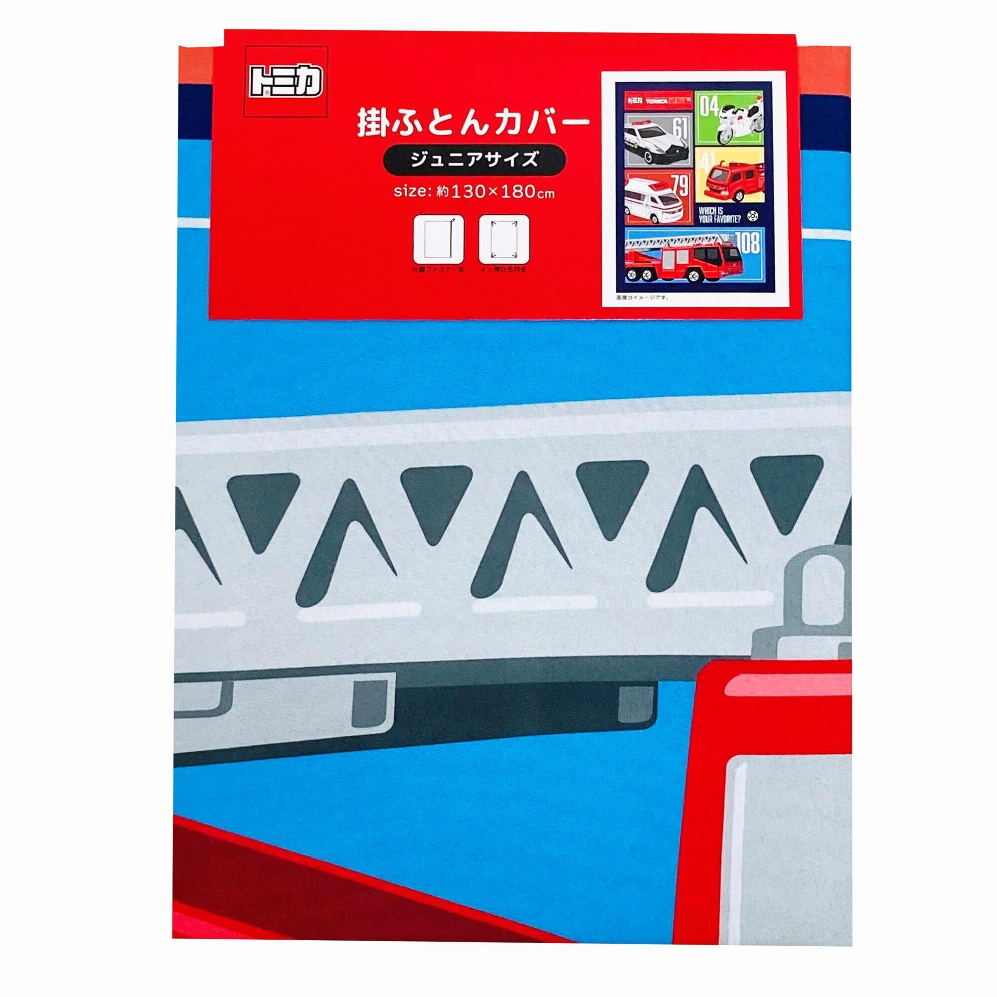 MORIPiLO トミカ 掛け布団カバー シングル (tomica 緊急車両 柔らかピーチスキン) ジュニアサイズ 子供用 ネイビー 130x180cm グッズ 可愛い パトカー 消防車 救急車 キャラクター まくらのモリシタ