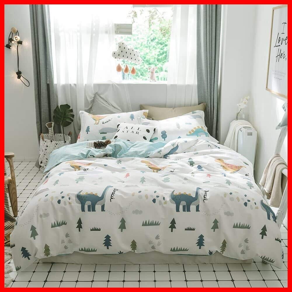 【特価セール】(Twin, Style 6g) - BuLuTu Dinosaur Print 3 Pieces Kids Bedding Sets Twin White For Boys Girls 100% Cotton, Premium Reversible Forest Duvet Cover Set Zipper Closure, Breathable, Soft and Cute, NO COMFORTER