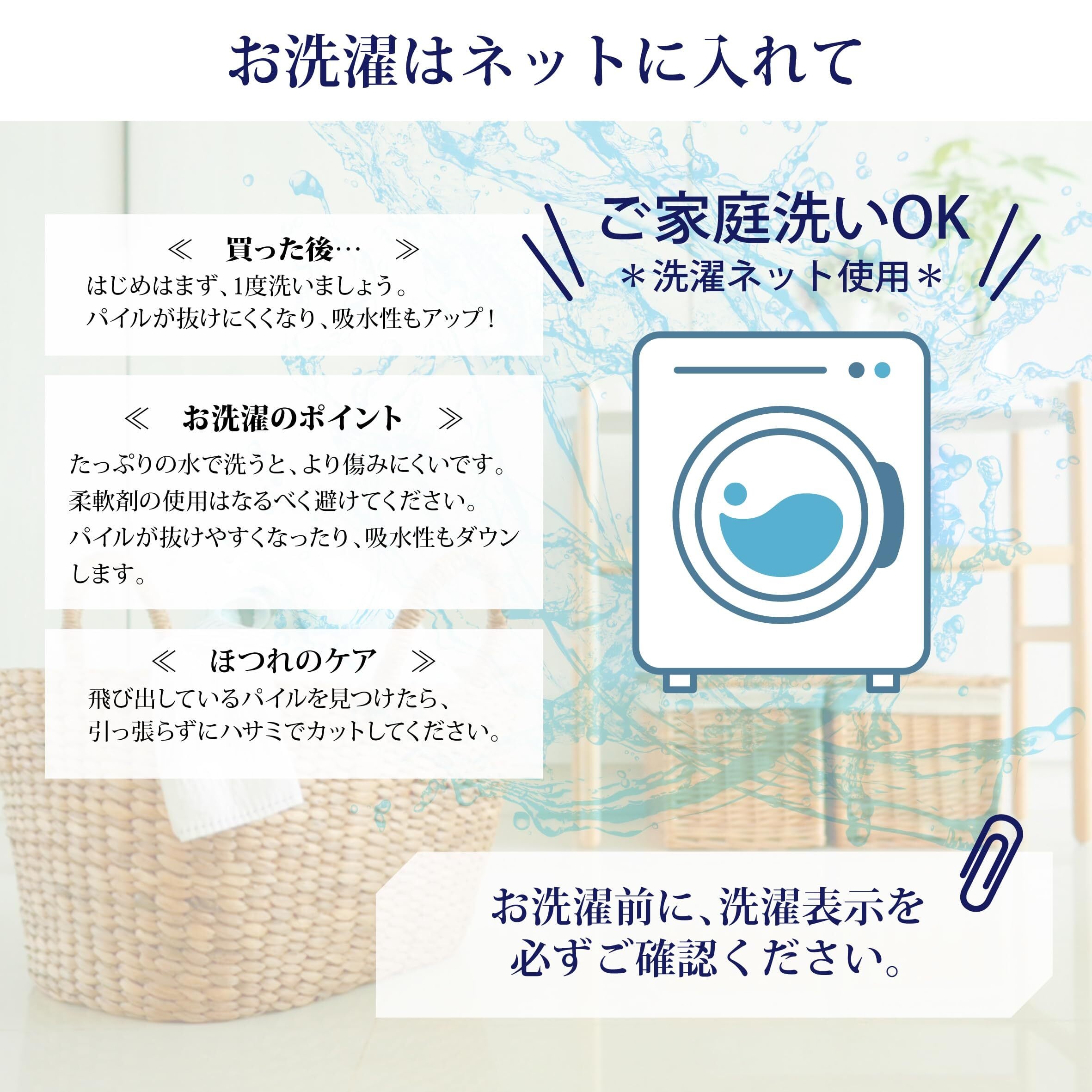 伸縮性に優れたタオル繊維を使用し、ふわふわのやさしい肌触りを実現。赤ちゃんから大人まで、誰でも安心して使用できる素材です。抗菌加工により、いつでも清潔に保つことができますので、安心してご使用いただけます。