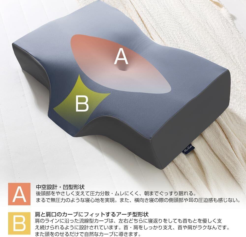 サイズ:標準的な枕サイズ / 材質:低反発ウレタン / 特徴:頭・首・肩の負担軽減、調整可能、洗えるカバー