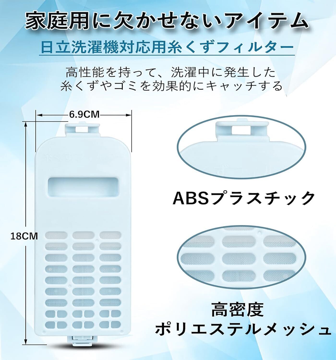 サイズ:標準サイズ / 対応機種:日立洗濯機各種 / 特徴:糸くずフィルター、クズ取りネット、全自動洗濯機対応