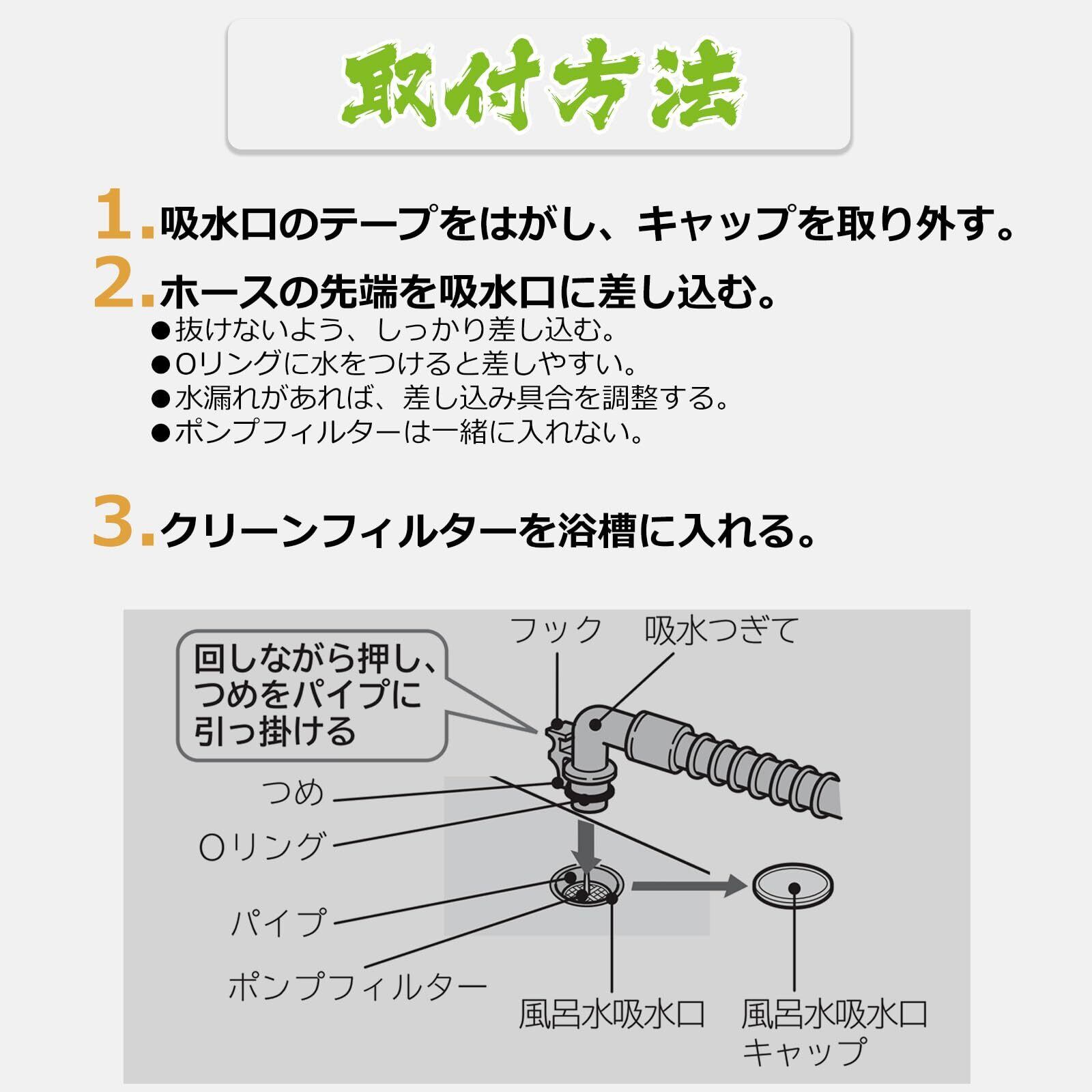特徴:バスポンプ機能、フィルター付き、長さ4M、簡単取り付け