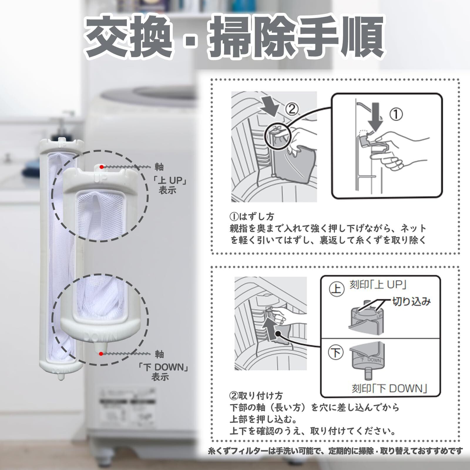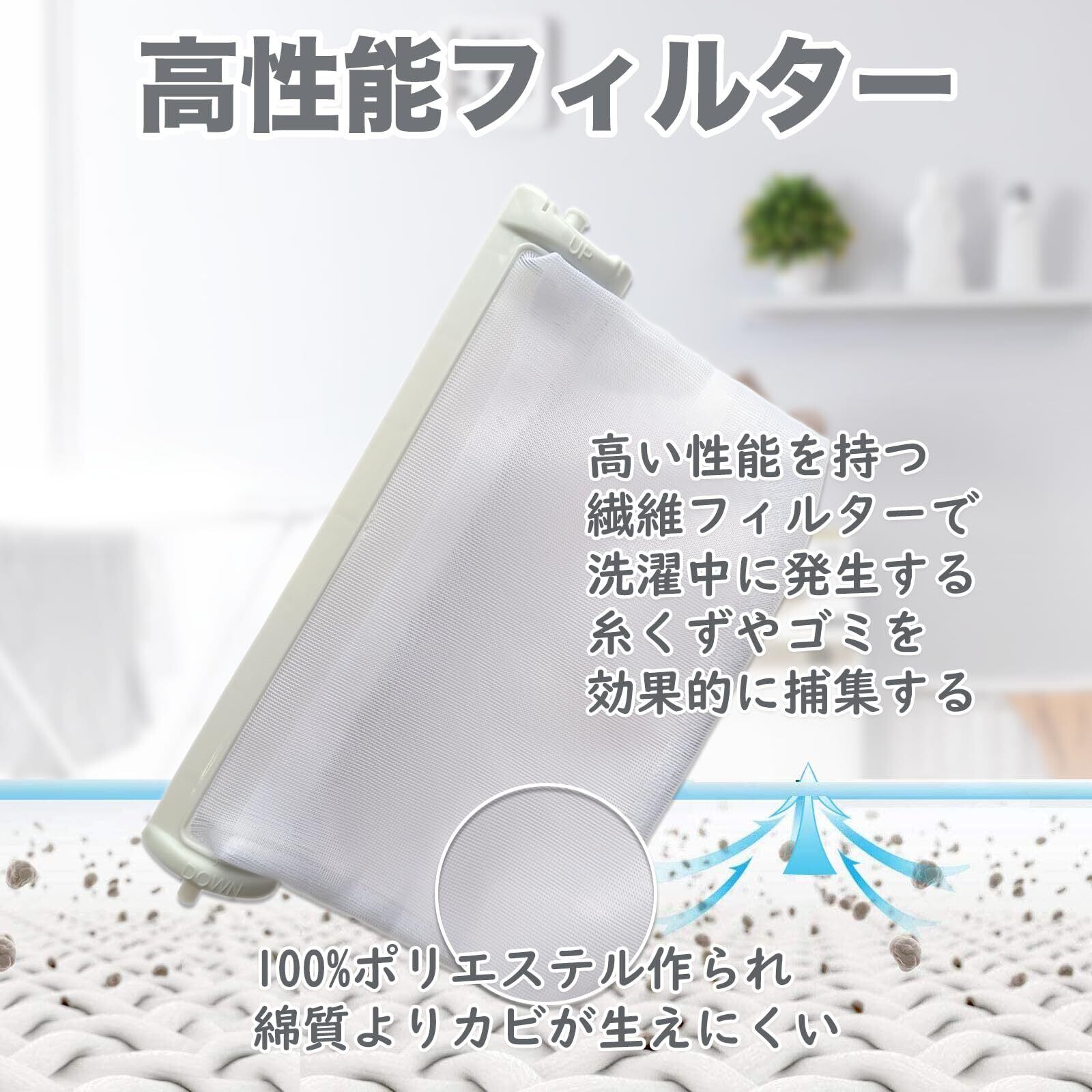 【高性能 · 高品質フィルター】耐久性のあるマイクロファイバー素材で作られており、長期間の使用にも耐えられます。高い性能を持って、洗濯中に発生した糸くずやゴミを効果的に捕集られます。洗濯機の糸くずフィルターは洗濯槽の汚れをキャッチしてくれる重要なパーツです。洗濯機の性能を保ち、衣類の清潔を守るために定期的に取り替えが必要あります。