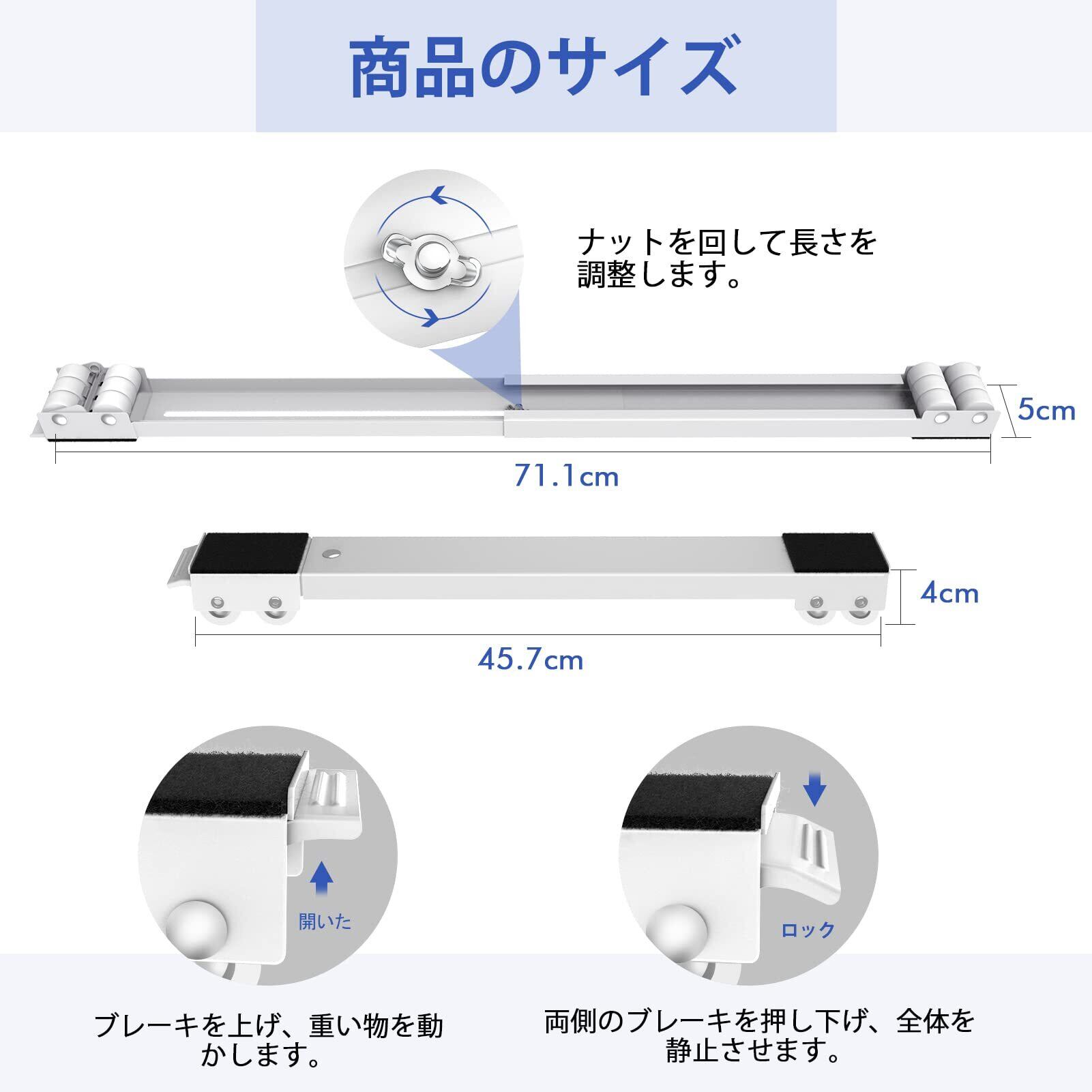 SPACEKEEPER 洗濯機 台 ブラケット 簡易式 冷蔵庫置き台 キャスター付き 移動できる 洗濯機パン 45.7~71.1cm長さ調整可能 高耐久 減音防振 静音 家具置き台 薄型4cm 耐荷重300kg ホワイト
