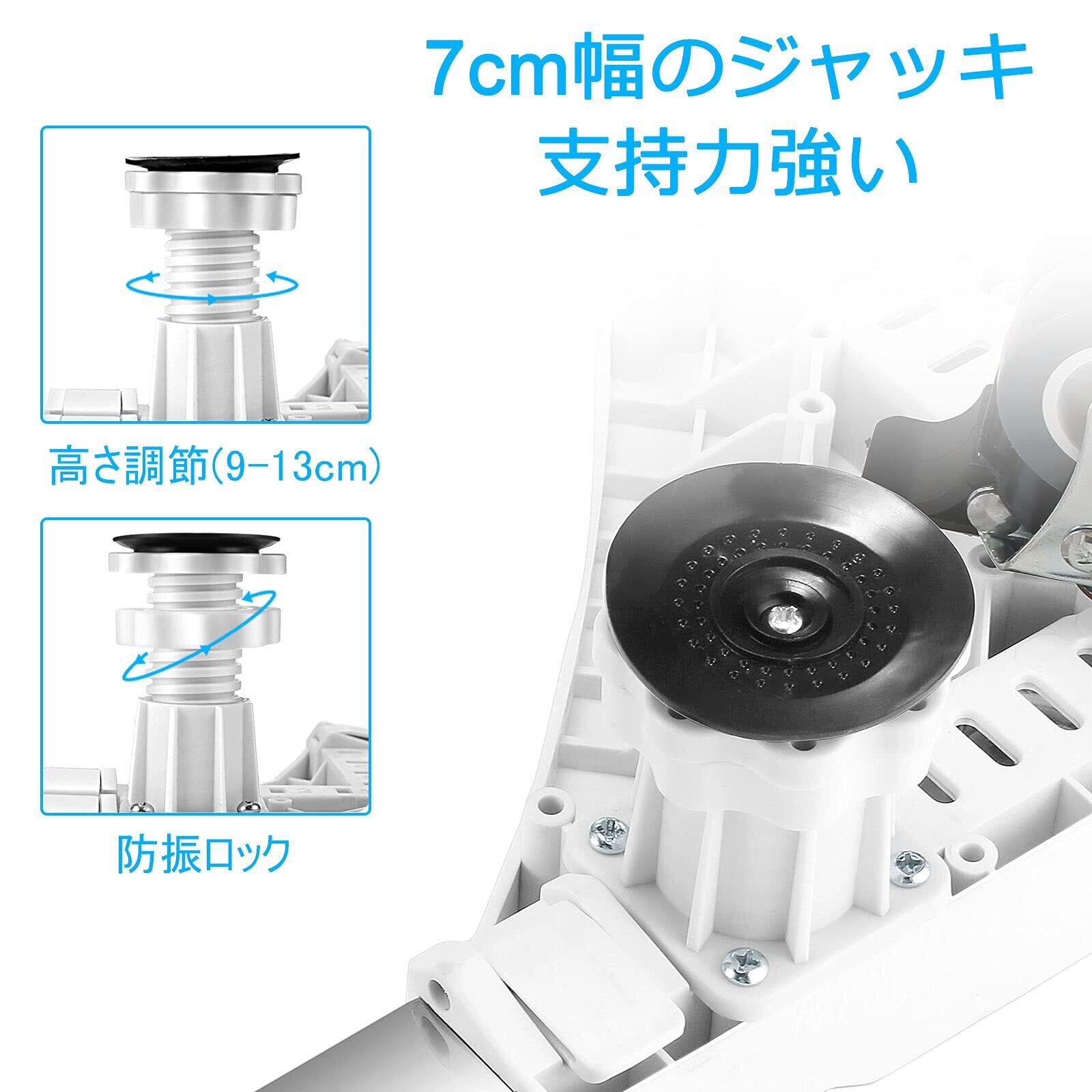 【移動式・高さ調整可能】この洗濯機置台は、4つの大きなジャッキと4つのキャスターがついており、高さや移動を調節することができます。また、洗濯機や冷蔵庫と床との接触を有効に防止できし、排水と清掃問題を簡単に解決します。水分による製品の錆びを防ぐこともでき、設備の寿命を延長することができます。