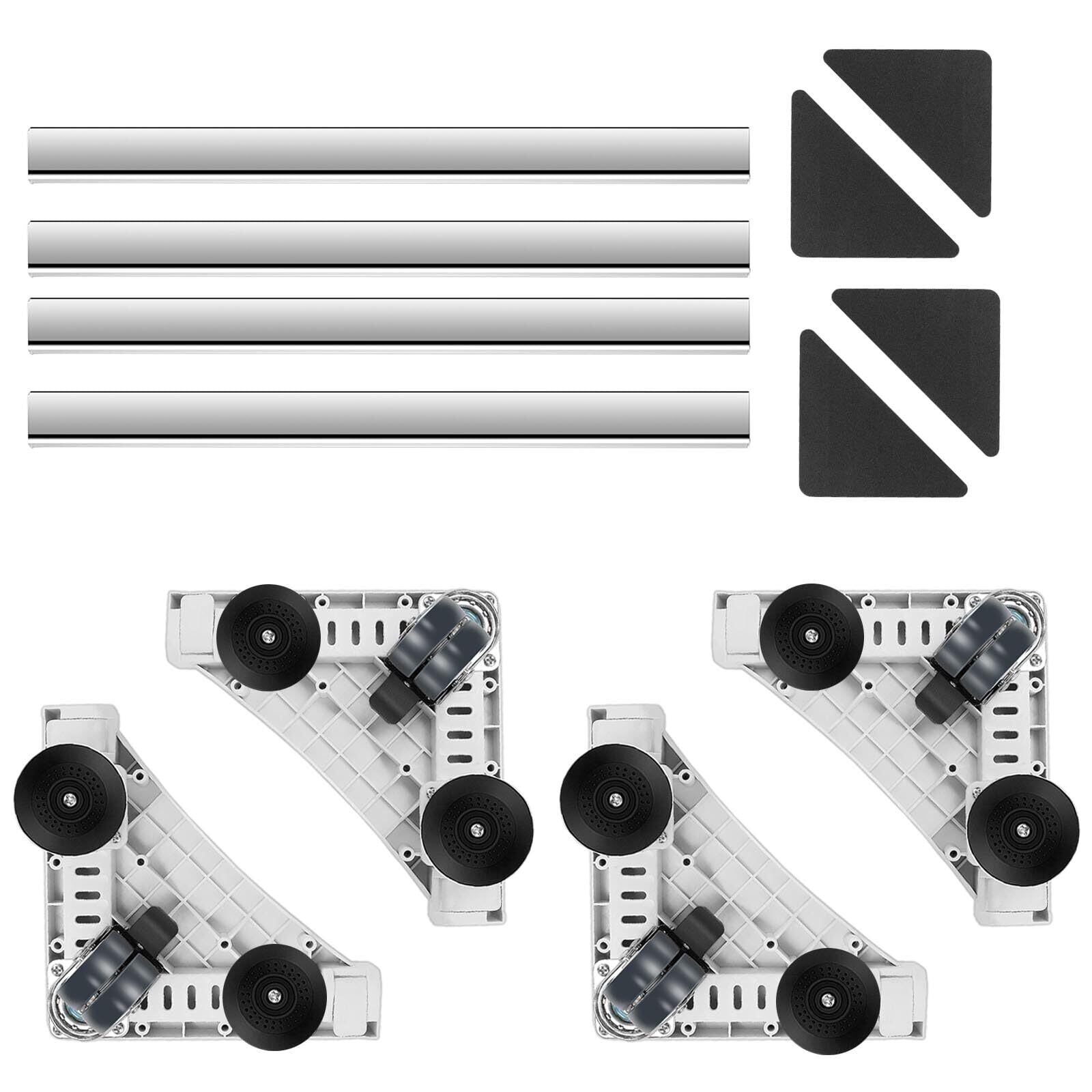 【高品質素材】高品質なステンレス鋼とABS樹脂を採用した冷蔵庫台は、非常に安定し、耐腐食性や錆止め性が抜群です。ローラーとジャッキを搭載しており、500 kgの負荷に耐えられ、エアコン、ドラム式や全自動洗濯機、冷蔵庫、食器棚洗濯機、植木鉢、大型機器など、さまざまな家具に使用することができます。