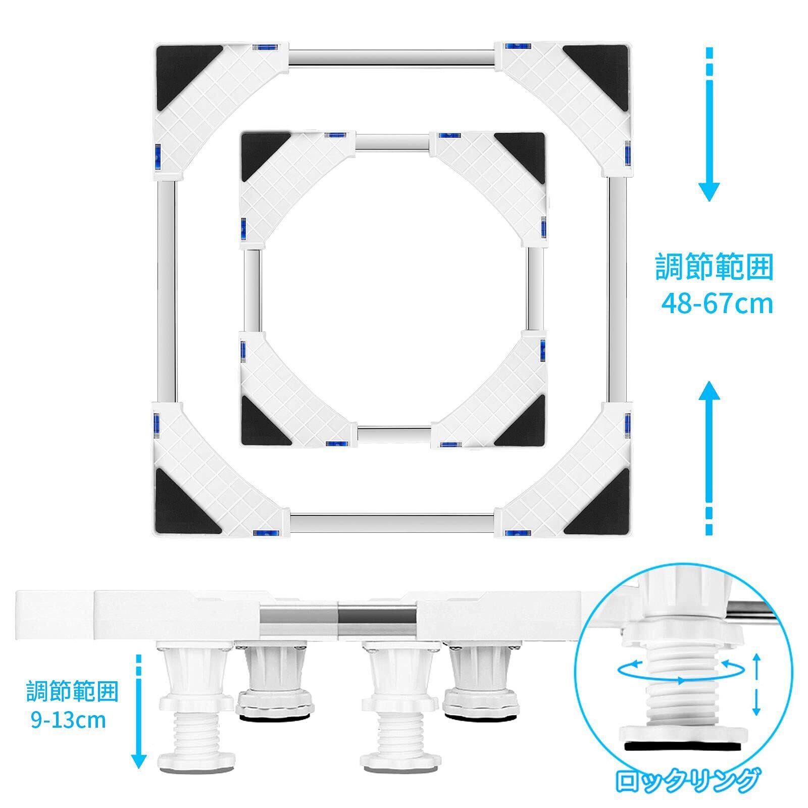 【在庫セール】洗濯機 台 キャスター付き Bexeze 洗濯機かさ上げ台 360°回転 奥行き47-67㎝伸縮可能 移動式 昇降可能 騒音対策 減音効果 耐荷重500kg 防振パッド付き 全自動式対応 冷蔵庫台