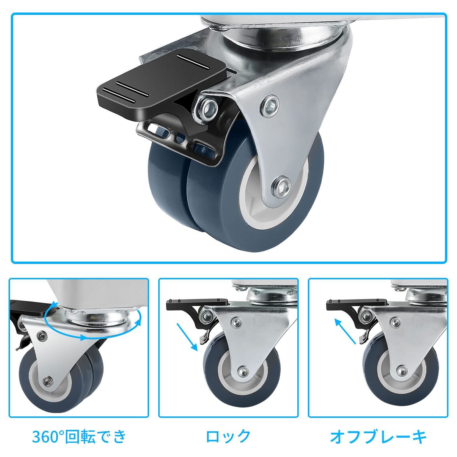 サイズ:奥行き47-67㎝ / 特徴:移動式・360°回転・耐荷重500kg