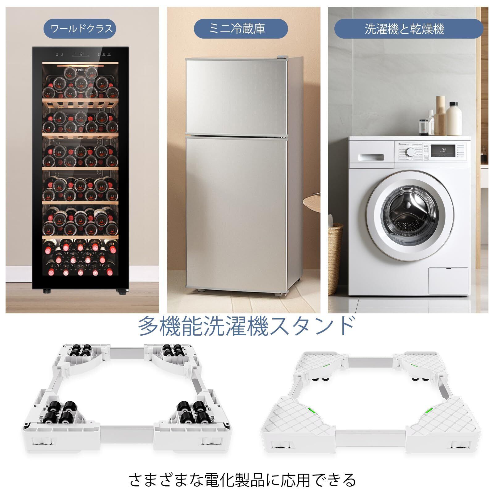 Sythdio Myth 洗濯機台 キャスター付き かさ上げ台 冷蔵庫置き台 冷蔵庫台 16個隠しキャスター付き 移動式洗濯機パン置き台 45.5-70cm長さ幅無階段調節可能 かさ上げ 伸縮式調整可能 排水パン ステンレス製 薄型4cm 耐荷重150KG ロック固定 防振減音 耐久性 滑り止め(ホワイト)