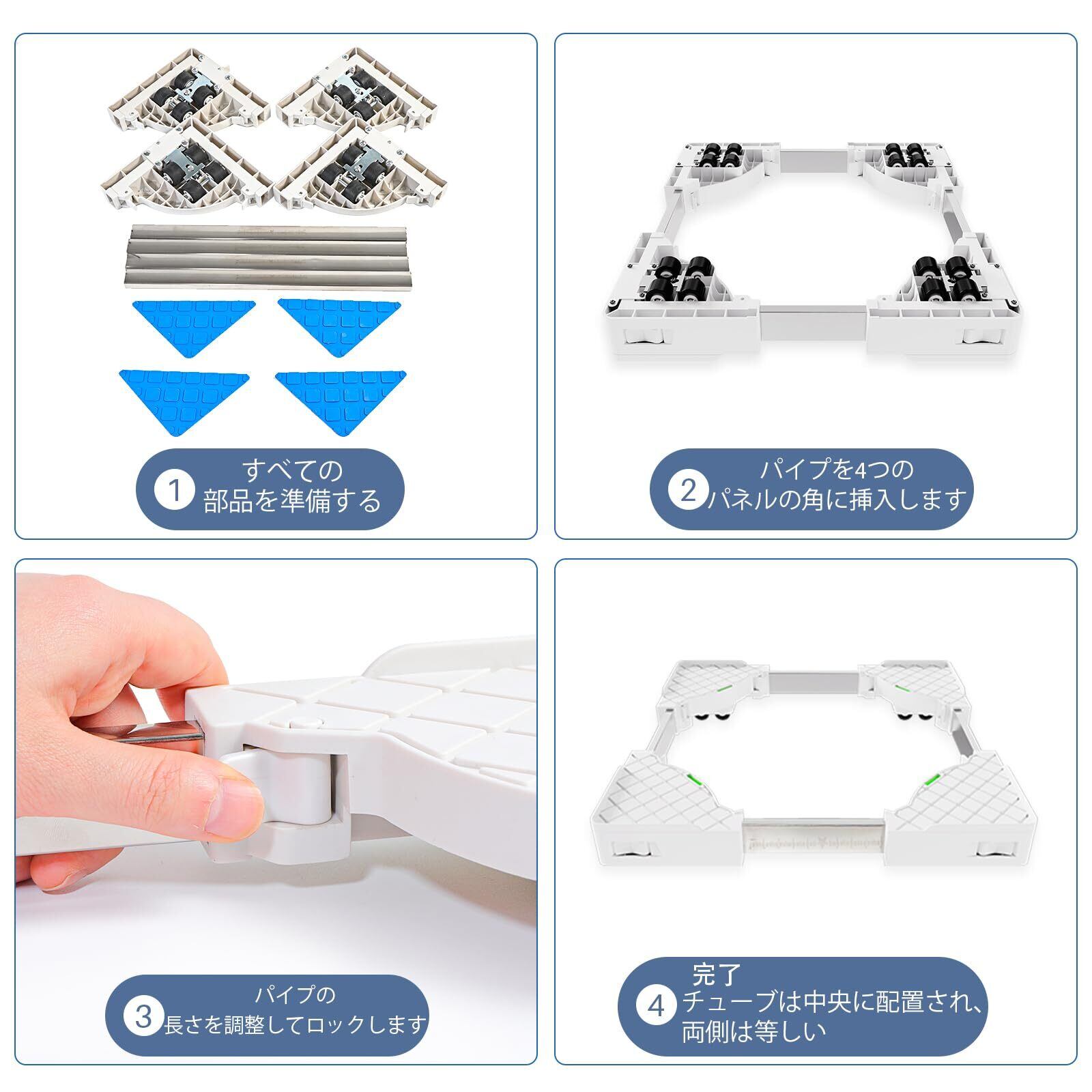 【高品質製品】高品質なステンレス鋼とABS樹脂を採用して、優れた安定性を保ち、腐食に耐えます。耐荷重も150 kgになります。エアコン、ドラム式や全自動洗濯機、冷蔵庫、食器棚洗濯機、植木鉢、大型機器など、さまざまな家具に使用することができます