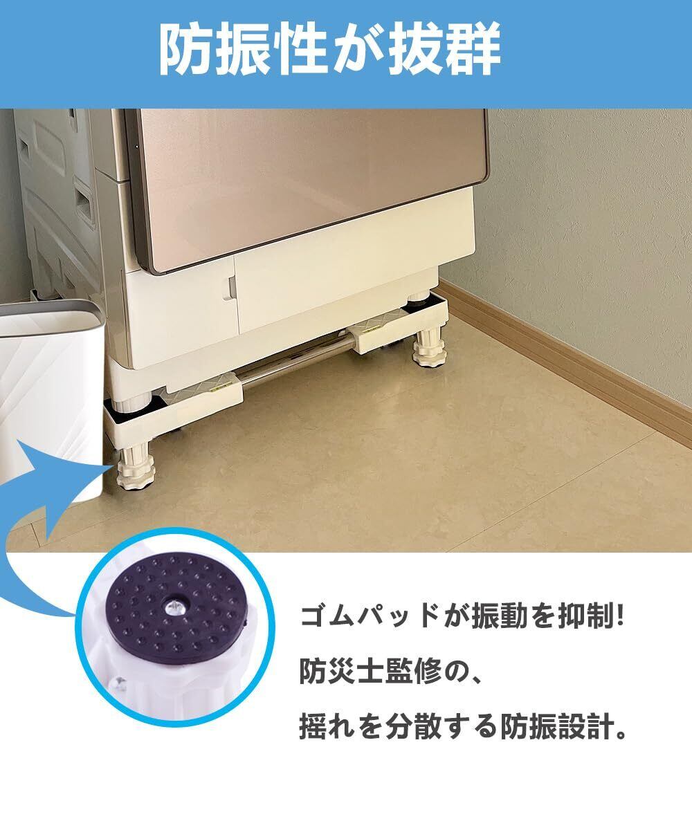 【新着商品】ZENG YUAN洗濯機 台 洗濯機 置き台かさ上げ 冷蔵庫置き台 高さを調節可能 ドラム式や全自動洗濯機に幅/奥行43~68cm対応 防振パッド付き 減音防振 耐荷重350KG