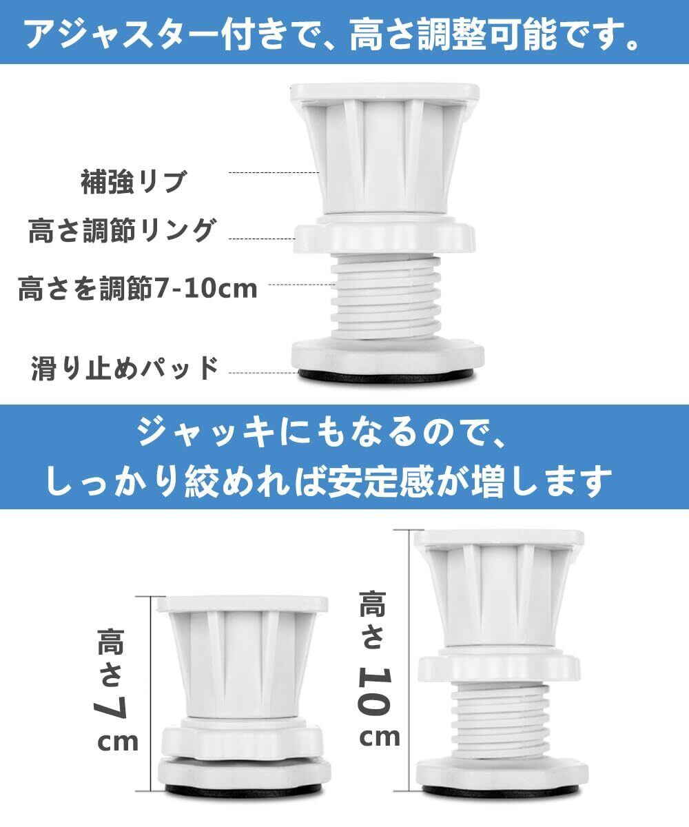 【楽々お掃除】洗濯機の下部分4か所に設置する高さ調節&防音対策用、床から高さを作り、掃除するときに便利です。一人暮らしの方や、女性の方でも洗濯機周りを手軽にお掃除して頂けます。